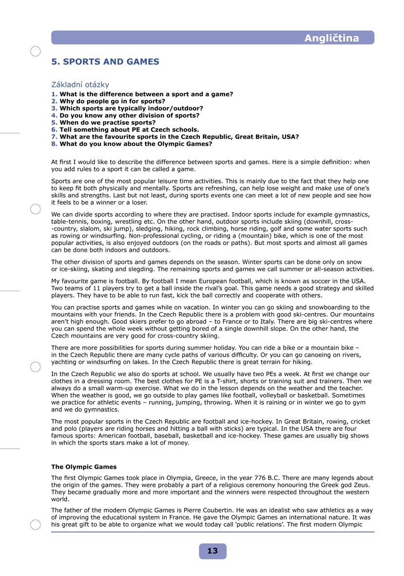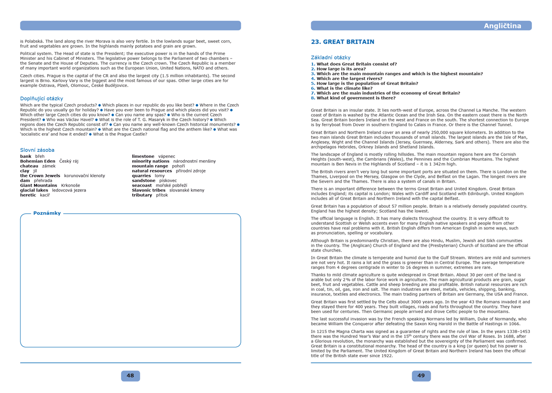Třicet vypracovaných maturitních témat pro vás bude základem k úspěšnému složení maturitní zkoušky z angličtiny. Každé téma je zpracováno na jednom listu tak, aby se list dal použít jako základ vaší vlastní přípravy nebo jako tahák.