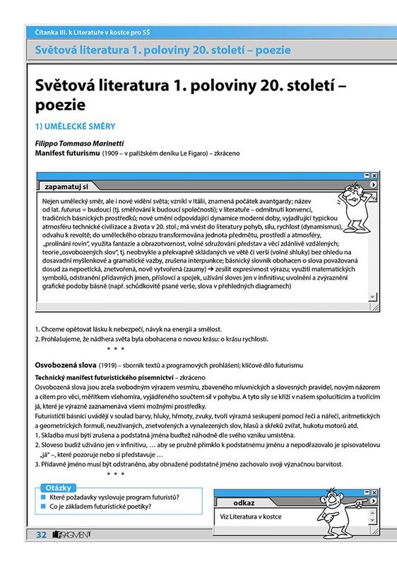 Studenti středních škol pozor! Získejte pečlivě vybrané ukázky textů, společně s metodickými úkoly pro práci s nimi ve III. dílu čítanky k učebnici Literatura v kostce. Tato učebnice je vhodným doplňkem nejen pro přípravu k maturitní zkoušce, ale pro všechny studenty SŠ.