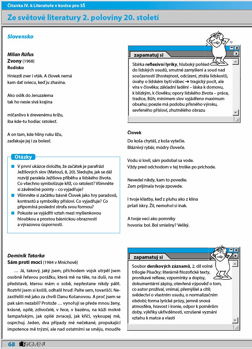 Studenti středních škol, pozor! Získejte pečlivě vybrané ukázky textů, společně s metodickými úkoly pro práci s nimi ve IV. dílu čítanky k učebnici Literatura v kostce. Tato učebnice je vhodným doplňkem nejen pro přípravu k maturitní zkoušce, ale pro všechny studenty SŠ.