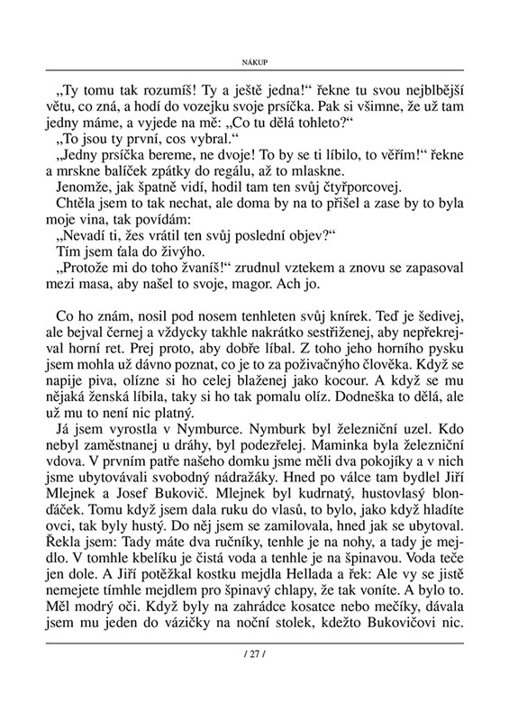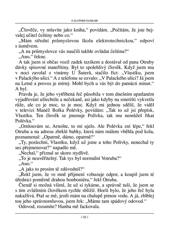 Jako bych našel pecku a dělal kolem ní třešeň. Nebo švestku. Podle toho, co seberu. Jádro každého příběhu jsem našel na cestě. Byl to třeba zážitek, s nímž se mi někdo svěřil, nebo jen věta zaslechnutá od vedlejšího stolu v restauraci. Moje práce spočívá v tom, že si představuju, co bylo před tím a co potom, a hledám v mateřštině slova, která dovedou vrátit dávno snědenému ovoci dužinu a šťávu. Kéž by vám to chutnalo.