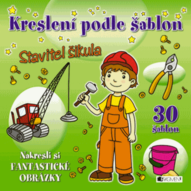 V knížce najdeš 30 nejrůznějších šablon od šikovného stavitele až po cihly, míchačku nebo ochrannou helmu. Všechny šablony můžeš libovolně kombinovat a nakreslit tak pokaždé jiný obrázek. Pro inspiraci jsme připravili 32 obrázků, které můžeš dokreslit a vybarvit podle vlastní fantazie.