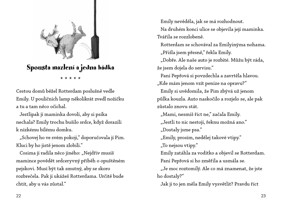 To ale dívky ještě netuší, že v zahradě starého pana Lisandera na ně čeká další přírůstek: Rotterdam, pravý a nefalšovaný čarodějný pes! Emily, Cosima a Pim stojí před těžkým úkolem, dávat pozor na tohohle psa je totiž horší, než uhlídat pytel blech.