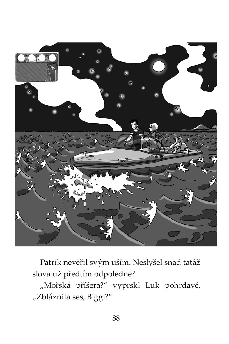 Během dobrodružného nocování v domku na pobřeží zpozoruje Patrik v hlubinách pod útesem přízračné sv...