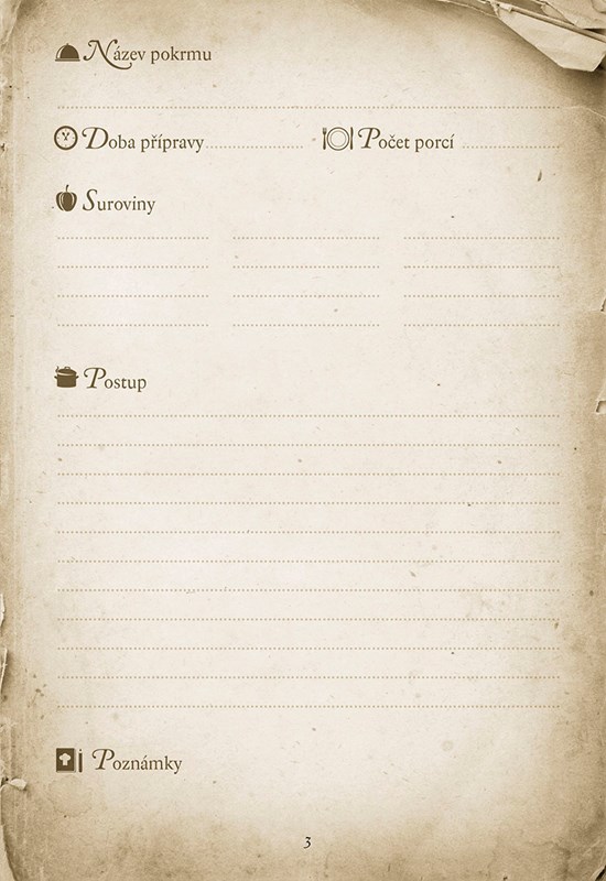 Vytvořte si i vy svůj vlastní poklad. Svou kuchařskou knihu, do níž budete zapisovat recepty na jídla, která vám chutnala. Recepty, které chcete zaznamenat nejen pro sebe, ale i pro svoji dceru, syna, vnučku nebo snachu.