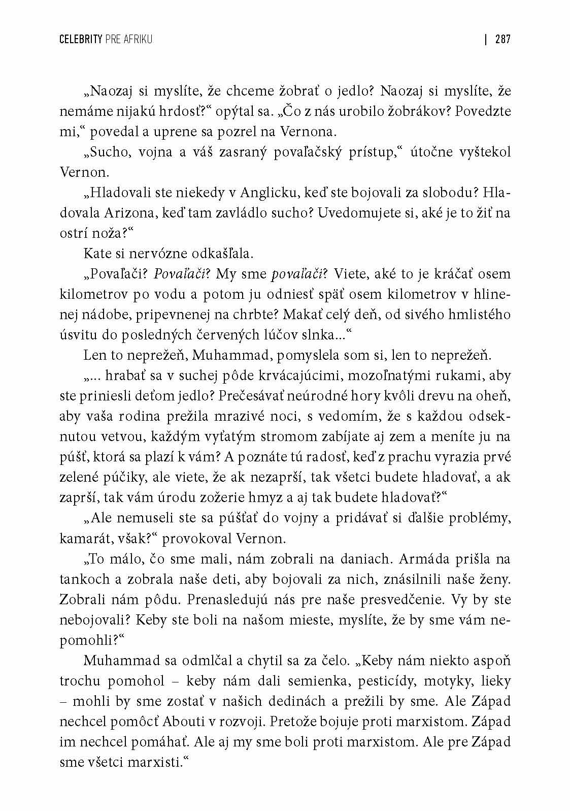 Celebrity pre Afriku je naozaj nádherný román s postavami, ktoré sa vďaka istým životným udalostiam postupne vyvíjajú ako osobnosti. Dej sprvu plynie pomalšie, no akonáhle sa do toho dostanete, čítanie neoľutujete. Skvelé spisovateľské schopnosti a osobné skúsenosti autorky dielu dodávajú dynamickosť a rozmanitosť prostredia, keďže Helen Fieldingová v utečeneckom tábore pred napísaním knihy v skutočnosti pracovala. Jej debut sa tak nesie v dojímavom a realistickom duchu so správou, ktorú ľudstvo pozná, ale zároveň si ju musí neustále pripomínať.