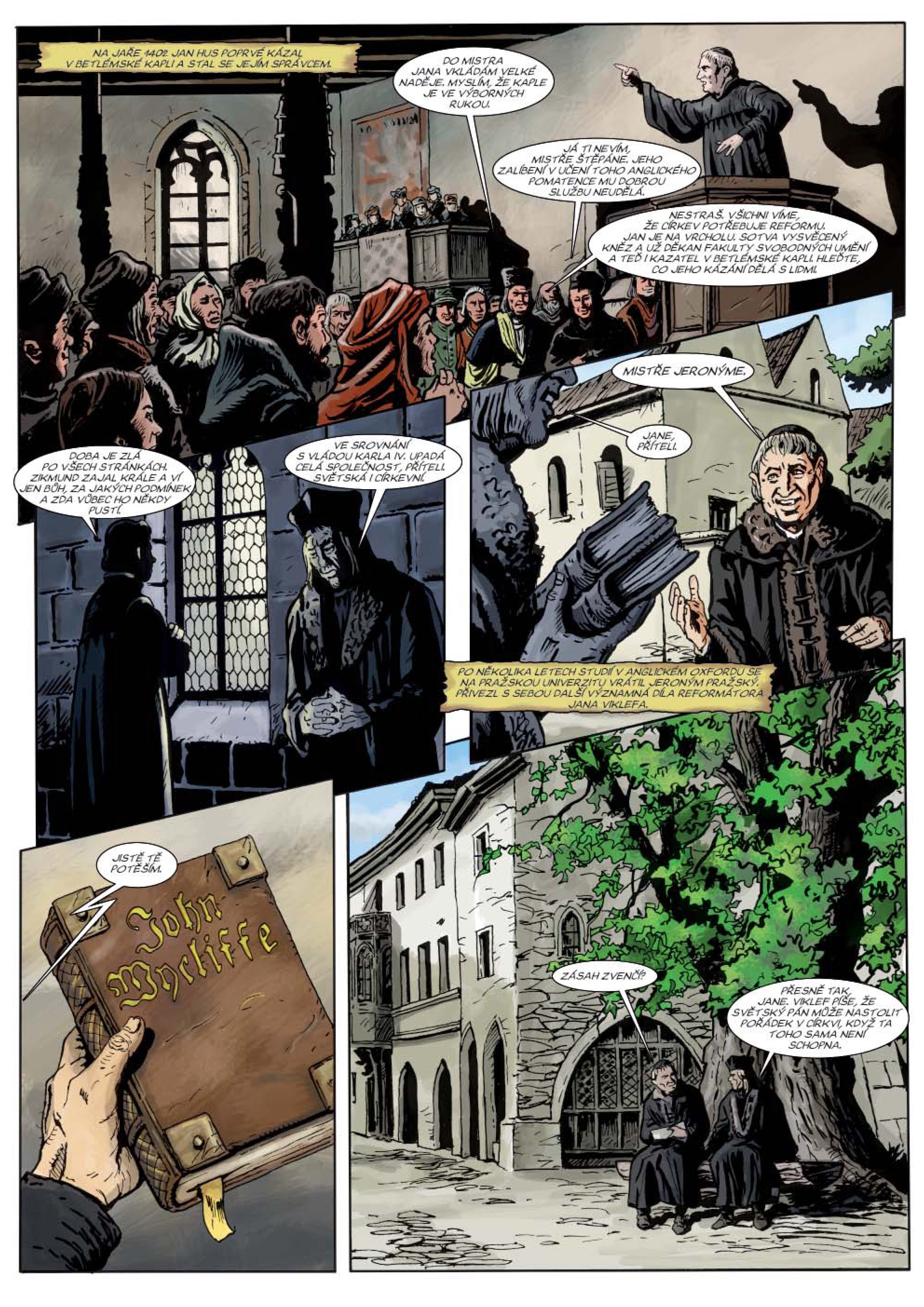 Kniha Ve jménu Husa nabízí netradiční pohled na důležité období české historie. Komiksové zpracování osudů tří významných osobností žijících v období husitské revoluce čtenáře pohltí a nenásilnou formou jednak seznámí s fakty, ale také přiblíží souvislosti. Kniha se zaměřuje na mládež, ale jistě ji ocení široká veřejnost.