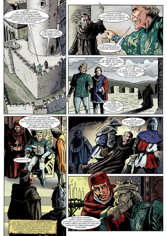 Textová část představuje poselství mistra Jana Husa, význam Karlovy univerzity, papežský koncil, protestantskou reformaci, ale i běžný život ve středověku.
