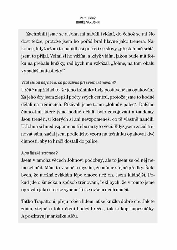 Autor sleduje kariéru tohoto rodáka z Kroměříže, mapuje jeho úspěchy a neúspěchy, ale zároveň nechá v plné síle působit opravdovost a ohromný zapálení, se kterým Bouřlivák John všechno prožívá. Z každé věty na nás dýchne osobitost a nesmírná autenticita, kterou si dokázal získat sympatie svých přátel a kolegů, ale kterou i mnohé z nich popudil. Mozaiku profesního a osobního života „nepřeslechnutelného“ trenéra doplňují svými postřehy jeho kamarádi a kolegové, například Pavel Vrba nebo Karel Brückner.