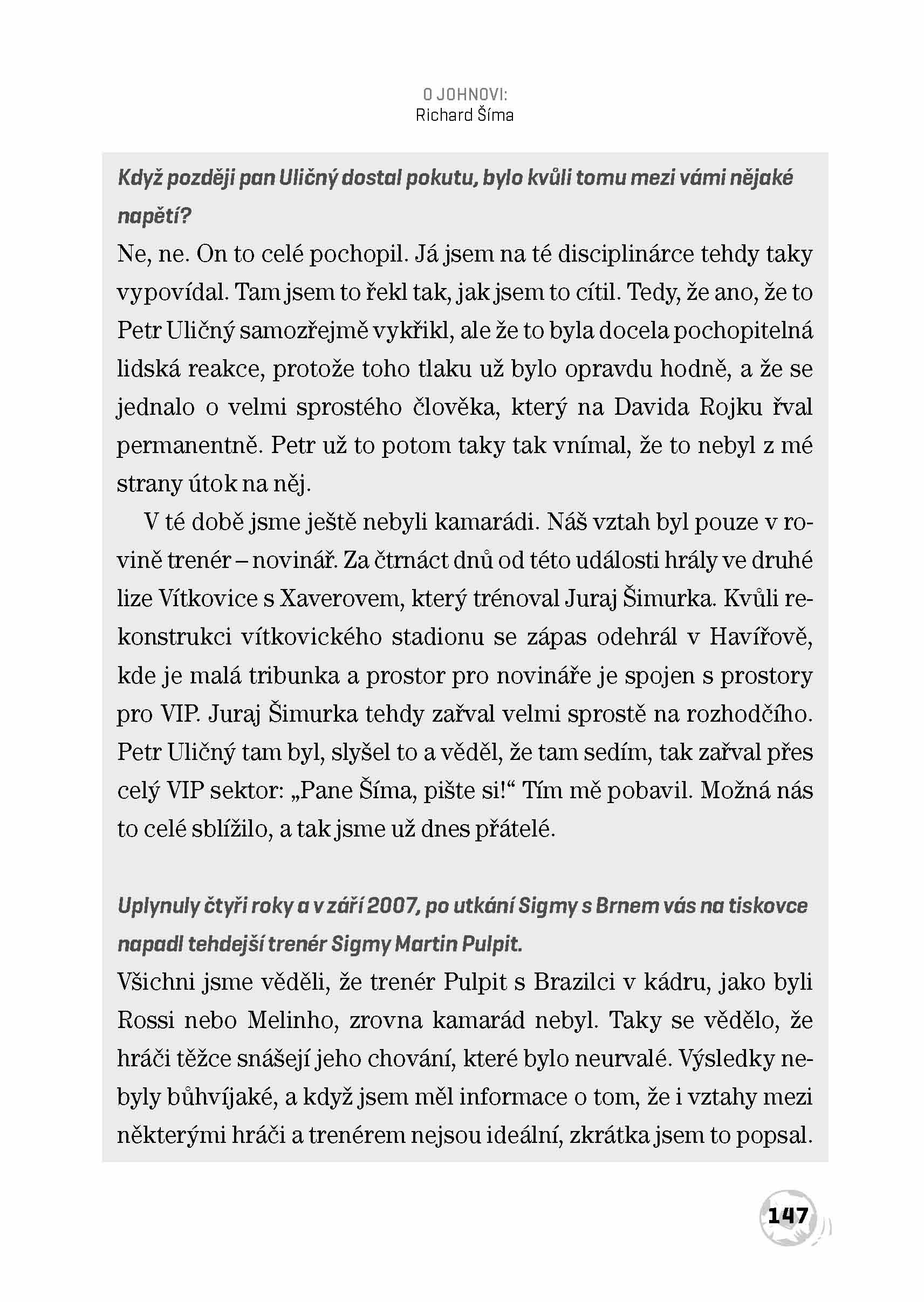 Petr Uličný, legendární John, vypráví o svých hráčských začátcích, o své trenérské kariéře, která byla pěkně spletitá, protože kvůli své „komunikativnosti“ vystřídal několik klubů, a nevyhýbá se ale ani vyprávění o svém soukromí a milované rodině.