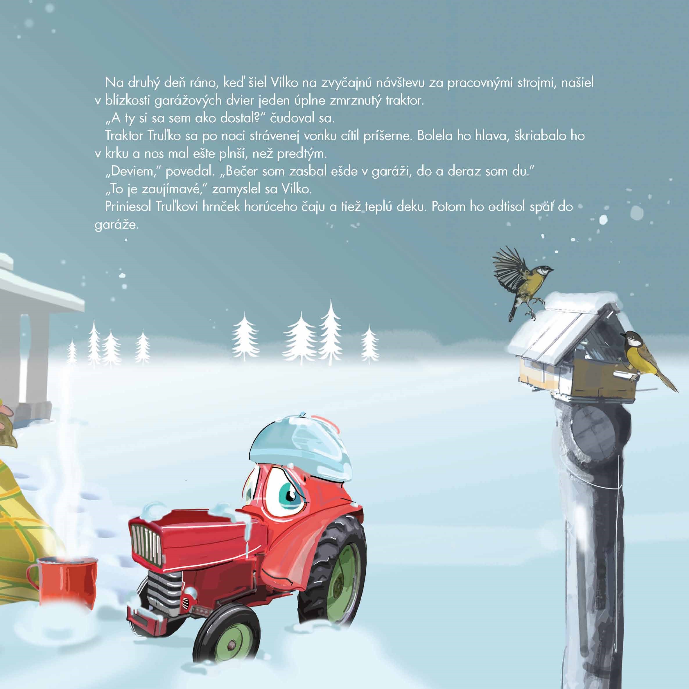 Na Vianoce čaká obyvateľov Vilkovej garáže prekvapenie: ku kamarátom sa nasťahujú dva nové stroje, kombajn a traktor. Kombajn sa volá Karol a veľmi rád číta, no a traktor má zvláštne meno Truľko. Je tu však jeden problém, ktorý treba urýchlene vyriešiť. Traktor v noci veľmi chrápe, takže ostatní sa poriadne nevyspia. A pritom si stačí len poriadne vyfúkať nos...