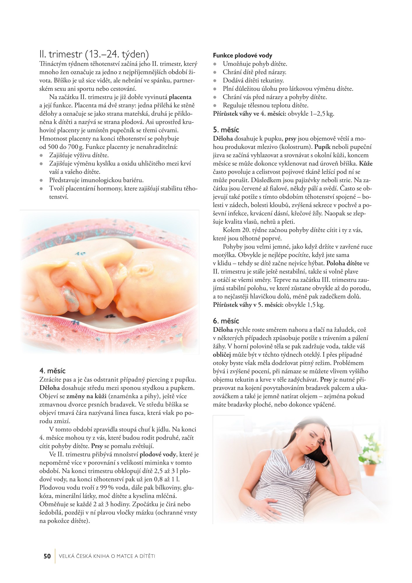 Naleznete v ní potřebné informace o početí, průběhu těhotenství (jak matky, tak dítěte), vše o porodu a péči o novorozence a kojence a kojení. Exkluzivita této knihy spočívá v tom, že vychází pouze z českého prostředí, je doplněna dokumentárními fotografiemi přímo z porodního sálu a novorozeneckého oddělení, obsahuje velké množství barevných obrázků, ultrazvukových snímků, nákresů a fotografií, díky kterým má tato kniha vysokou informační hodnotu.