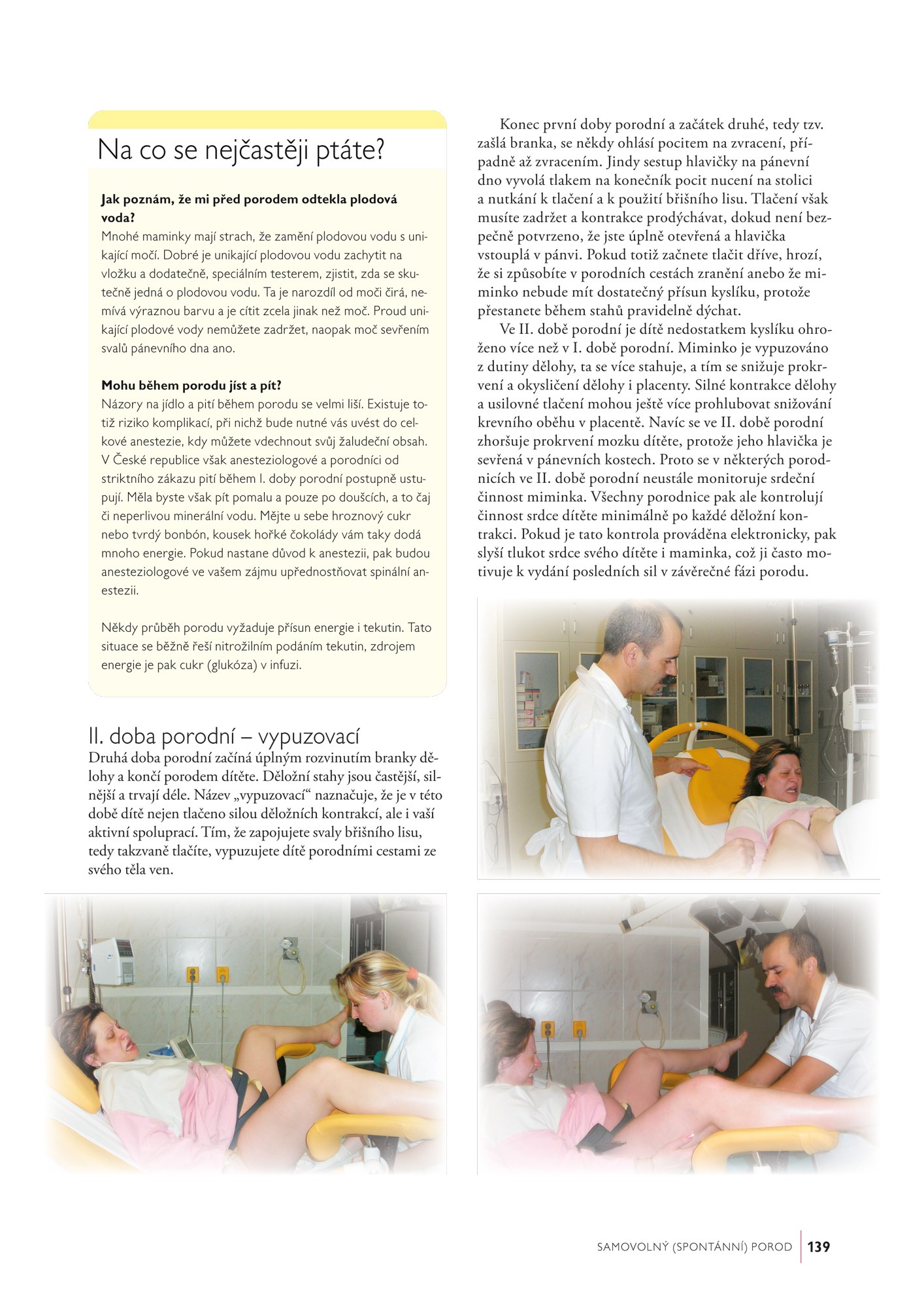 - Průběh porodu včetně všech mimořádností, jak probíhají, a co z nich vyplývá pro maminku a dítě. Možnosti anestézie a jak se aplikuje. Cvičení po porodu, průběh šestinedělí, co v tomto období dělat a čemu se naopak vyhnout. Jak postupovat v případě poporodních depresí.