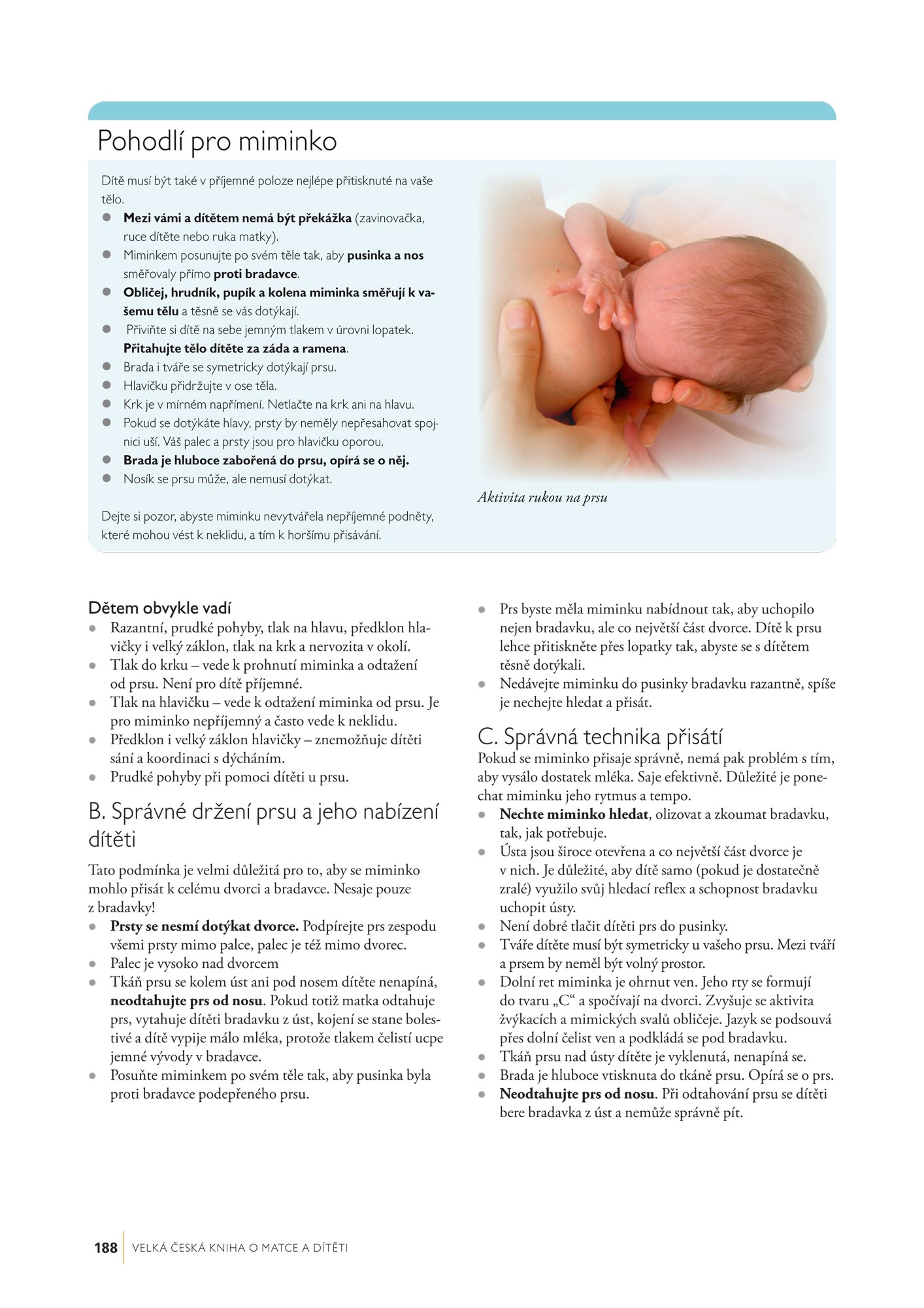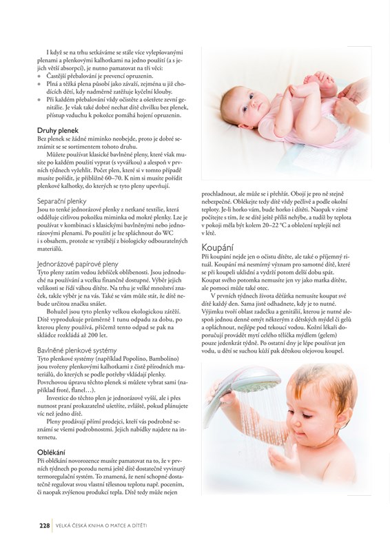 - Péče o novorozence v porodnici, a následně doma. Kompletní rady, jak o dítě pečovat, jak ho krmit, oblékat, ošetřovat, koupat, uspávat, zda a kdy používat dudlík, vše potřebné o kojení, jak dítě správně držet.