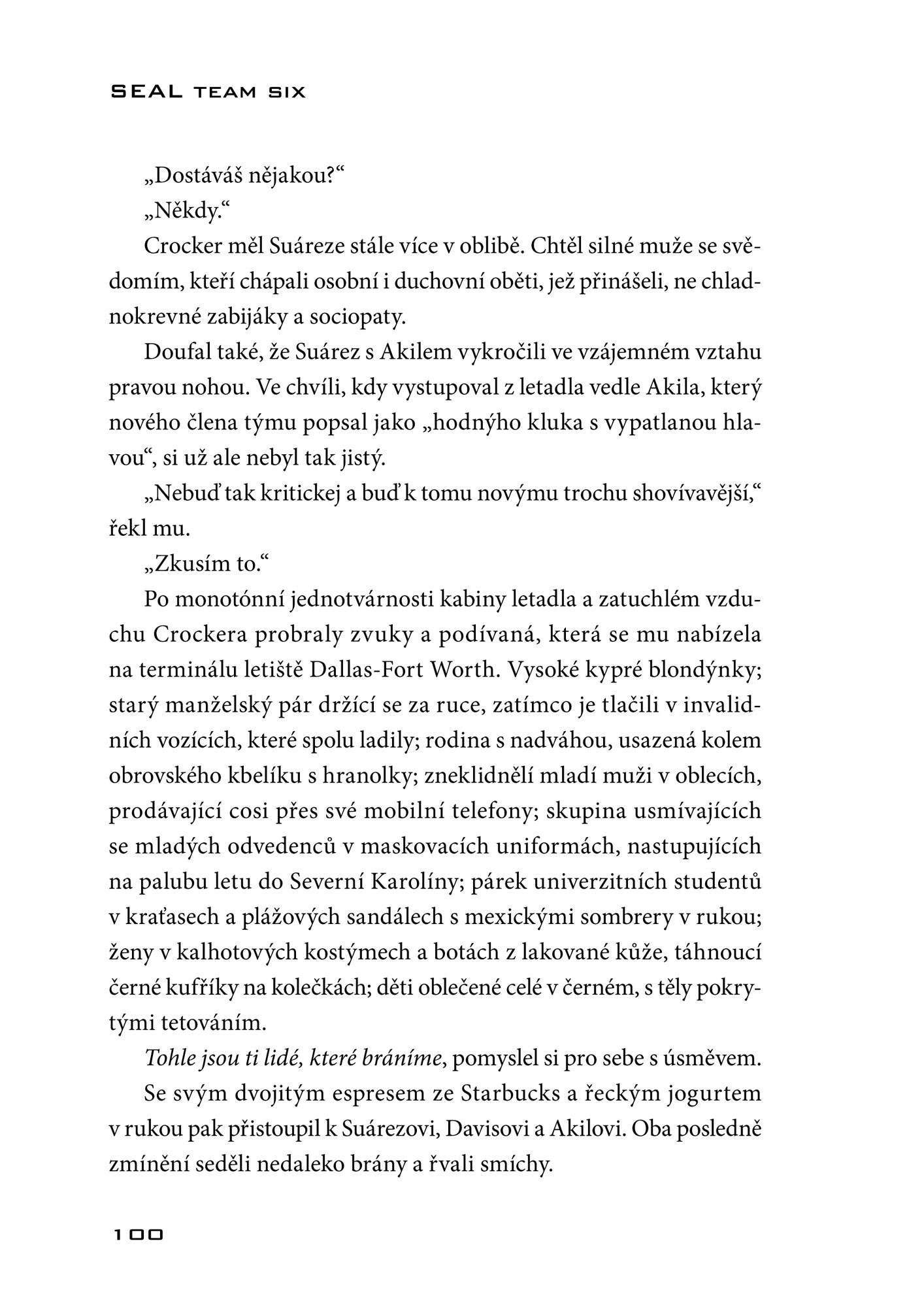 "Neustálý příval akce dělá z této knihy hodnotný příspěvek k rychle se rozvíjejícímu žánru thrilleru pojednávajícího o příslušnících SEAL."