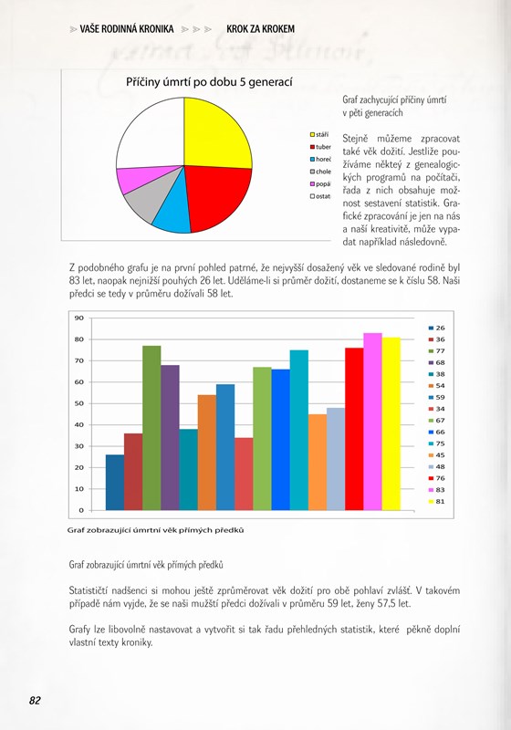 Pomůže vám od prvních krůčků v samotném začátku sepisování, s určováním toku příběhu, s tím, jak přehledně představit jednotlivé členy rodu i jak text obohatit dalšími rozšiřujícími informacemi, statistikami a grafickými přehledy tak, abyste ve výsledku vytvořili přehlednou a ucelenou rodinnou kroniku.