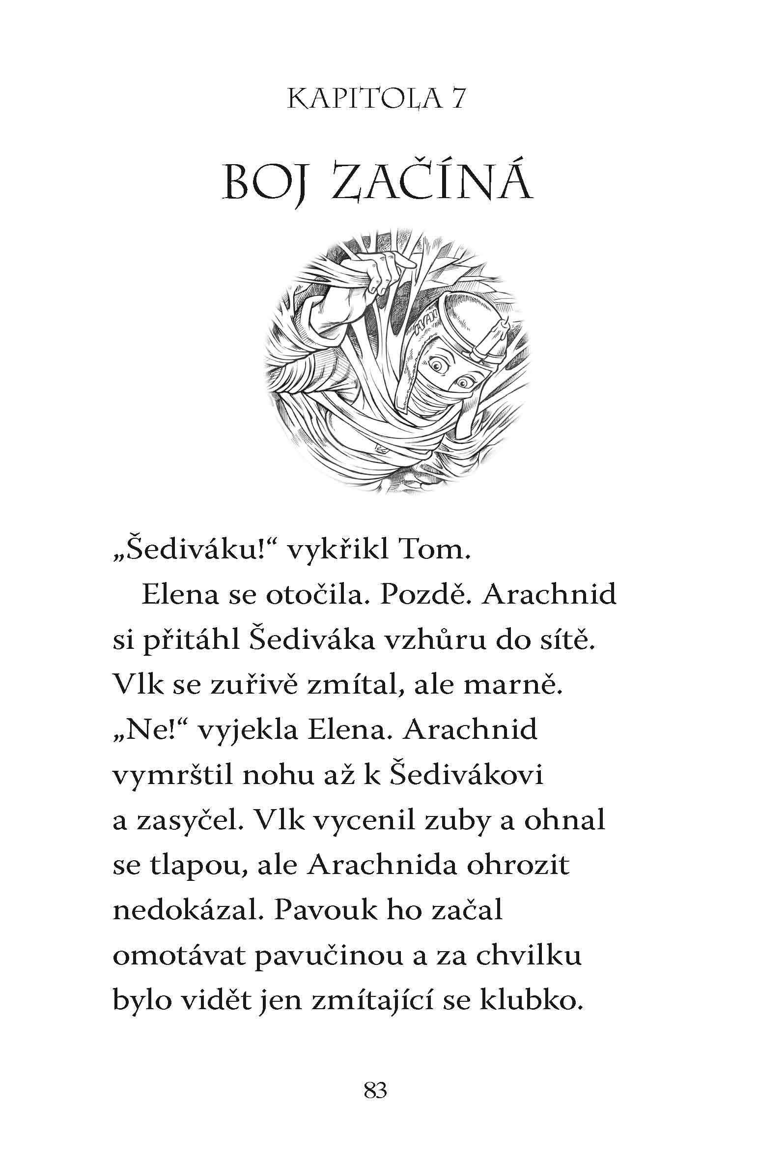 V jeskyni hluboko v horách na něj čeká Arachnid, obrovitý pavouk. Je to učiněné monstrum! Jeho velikost si můžete představit podle vláken, která spřádá. Jsou tlustá jako provazy! A pod lepkavou sítí? Hromady vybělených kostí! Nestačí ale jen najít Arachnidův brloh a utkat se s netvorem. Tom musí nejdříve zachránit Ettu i vlka Šediváka, kteří visí spoutaní v pavoučí síti, ochromení pavoučím jedem.