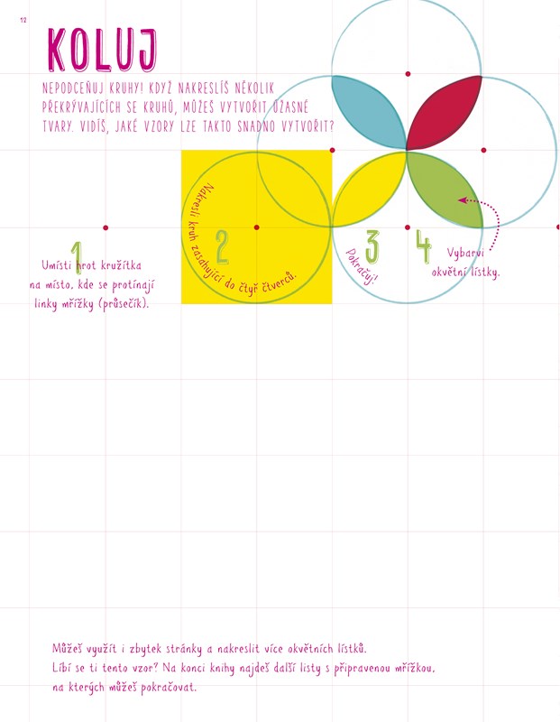 Projdi si postupy a vytvoř ohromné množství matematických vzorů a tvarů. Všimni si, jak se pyramidy a spirály skládají z různých vzorů, nauč se kreslit dokonalý kruh, ďábelské paraboly, nekonečný trojúhelník atd. V knížce najdeš spoustu místa pro vytváření a vybarvování vlastních matematických uměleckých děl. Na konci jsou pak prázdné stránky s mřížkami, kde můžeš kreslit další a další obrazy!