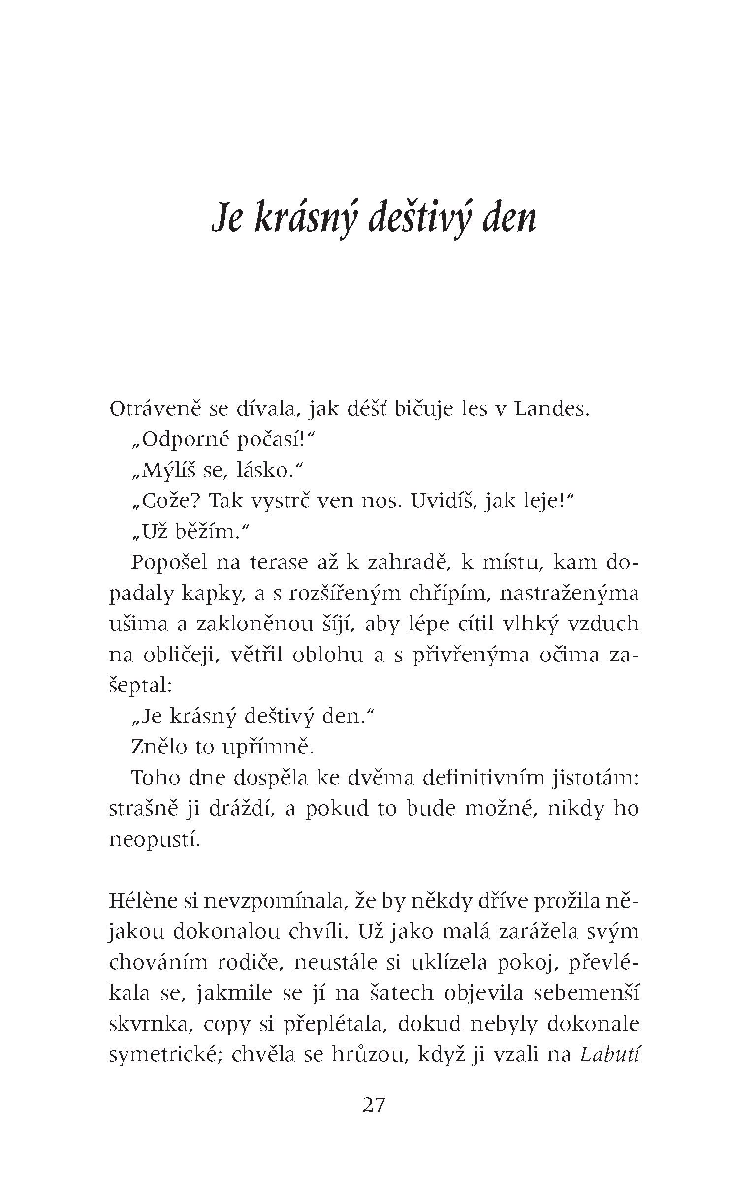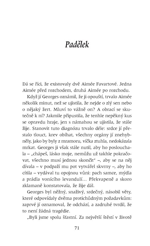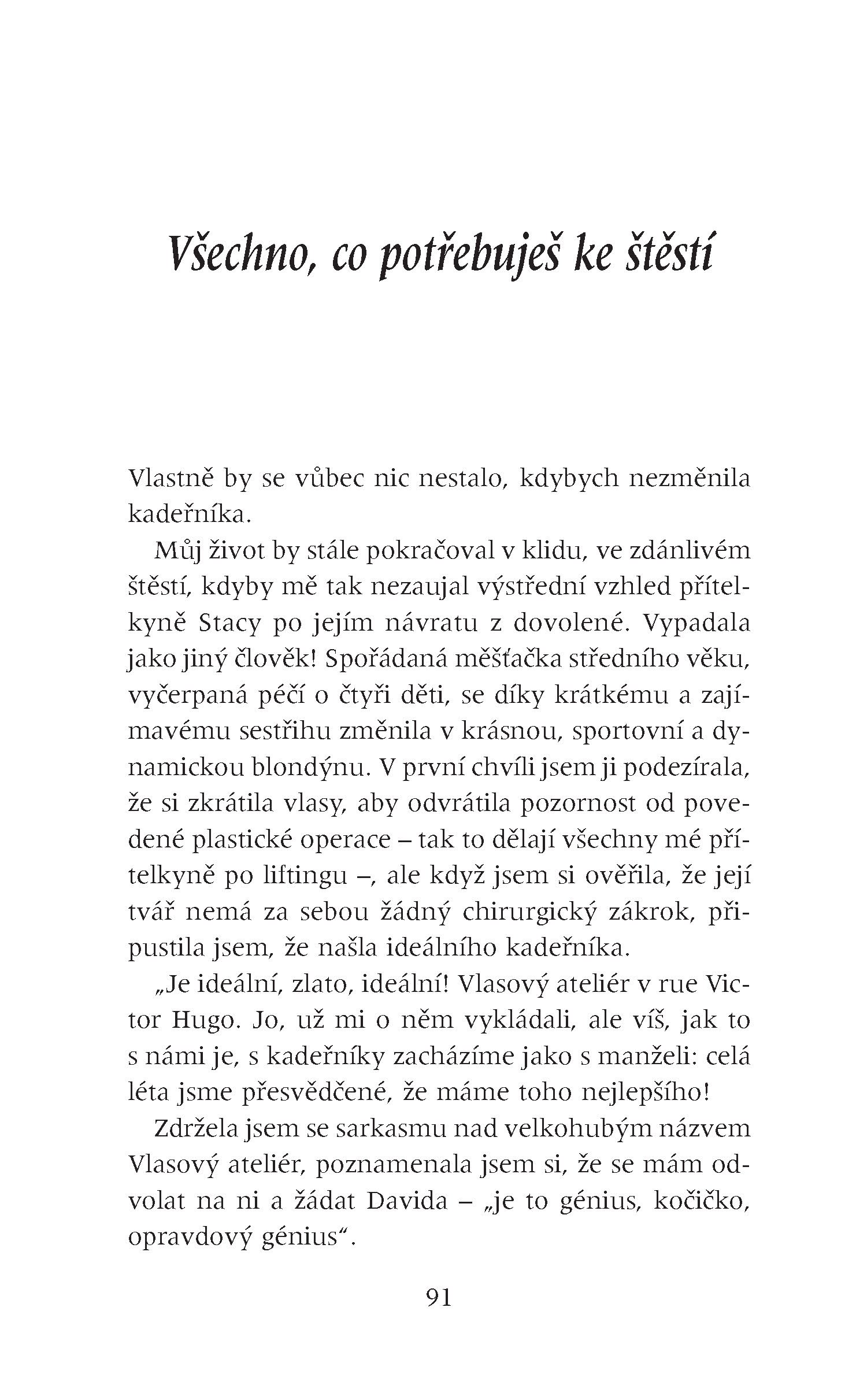 Všechno, co potřebuješ ke štěstí. Existuje věta, jakou bych slyšela častěji? Říkají to lidi také někomu jinému, nebo si ji rezervují jenom pro mne? Jakmile se odvážím sebemenšího projevu nespokojenosti, už to mám na talíři: „Máš všechno, co potřebuješ ke štěstí.“ Jako by mi křičeli do tváře: zmlkni, nemáš právo si stěžovat, načež mi přibouchnou dveře před nosem.