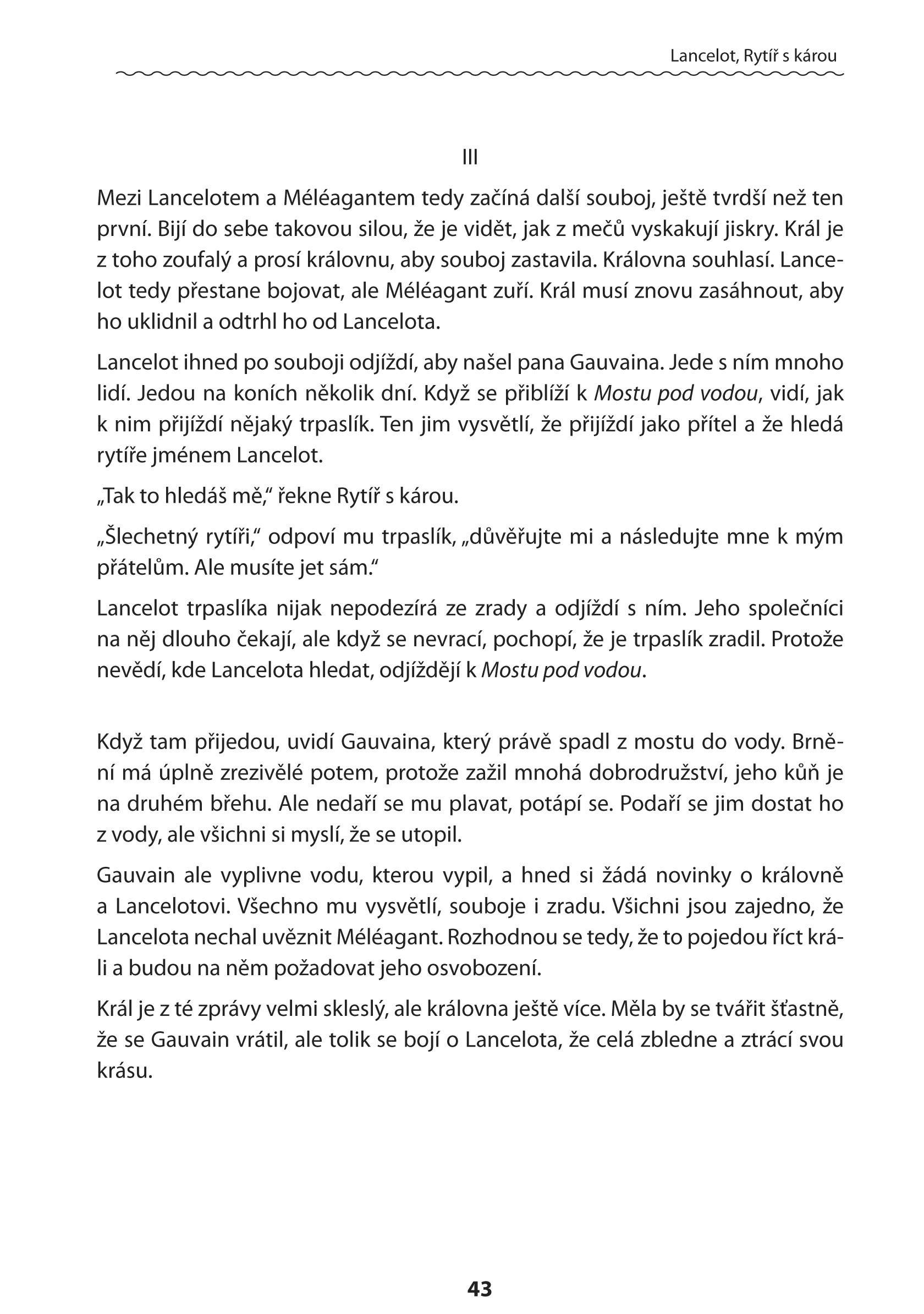 V knize najdete zjednodušené verze románů od francouzského středověkého básníka a trubadura Chrétiena de Troyes. První z ních Lancelot aneb Rytíř s károu vypráví o lásce nejznámějšího rytíře Artušova dvoru Lancelota k manželce samotného krále Ginevře. Co zvítězí v tomto souboji: oddanost svému králi či vášeň k překrásné dámě? K tématu lásky se autor obrací i v dalším románu Yvain aneb Rytíř se Lvem, tentokrát se ale jedná o lásku manželskou. Aby si ji rytíř zasloužil, musí odolat mnoha překážkám a projít skrze velká utrpení.