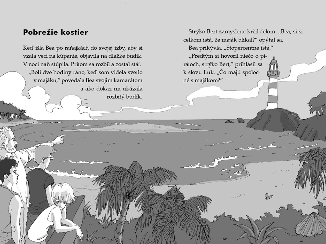 Pridajte sa k detektívom z Tigrieho tímu! Nech vašej pozornosti neujde nič podozrivé! Bea, Patrik a Luk sa na Pobreží kostier dostanú na stopu novodobým lotrom, ktorí nie sú o nič menej krutí než starí piráti. Dobrodružstvo sa točí okolo tajomného majáka, pochmúrnych podzemných chodieb, pirátskeho hrobu a mapy pokladu. Nájdu poklad naši pátrači alebo sa ho zmocnia ich nebezpeční protivníci?