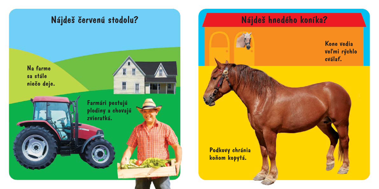 Otoč kolieskom, objavuj roztomilé obrázky zvieratiek z farmy a nauč sa o nich niečo. Jednoduché úlohy rozvíjajú detskú predstavivosť a schopnosť riešiť problémy. Navyše podporujú koordináciu pohybov a zrakového vnímania. Skvelé interaktívne leporelo, ktoré budú deti milovať!