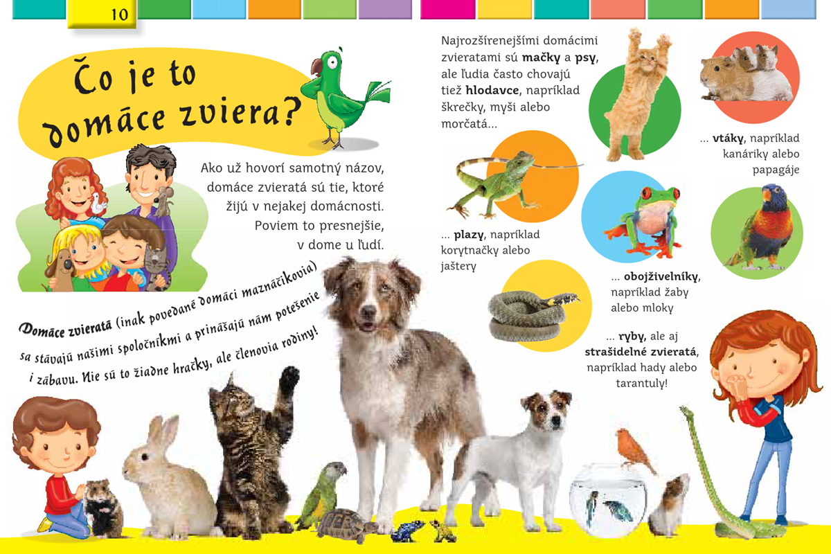 Spoznávame svet domácich zvierat.Deti často snívajú o tom, že budú chovať nejaké zvieratko. Čo všetko ale taký domáci miláčik potrebuje? Táto kniha pútavo a zábavne predstaví zvieratká, ktoré sa bežne chovajú doma, a oboznámi deti o ich potrebách. – obrázky– zaujímavosti– fakty