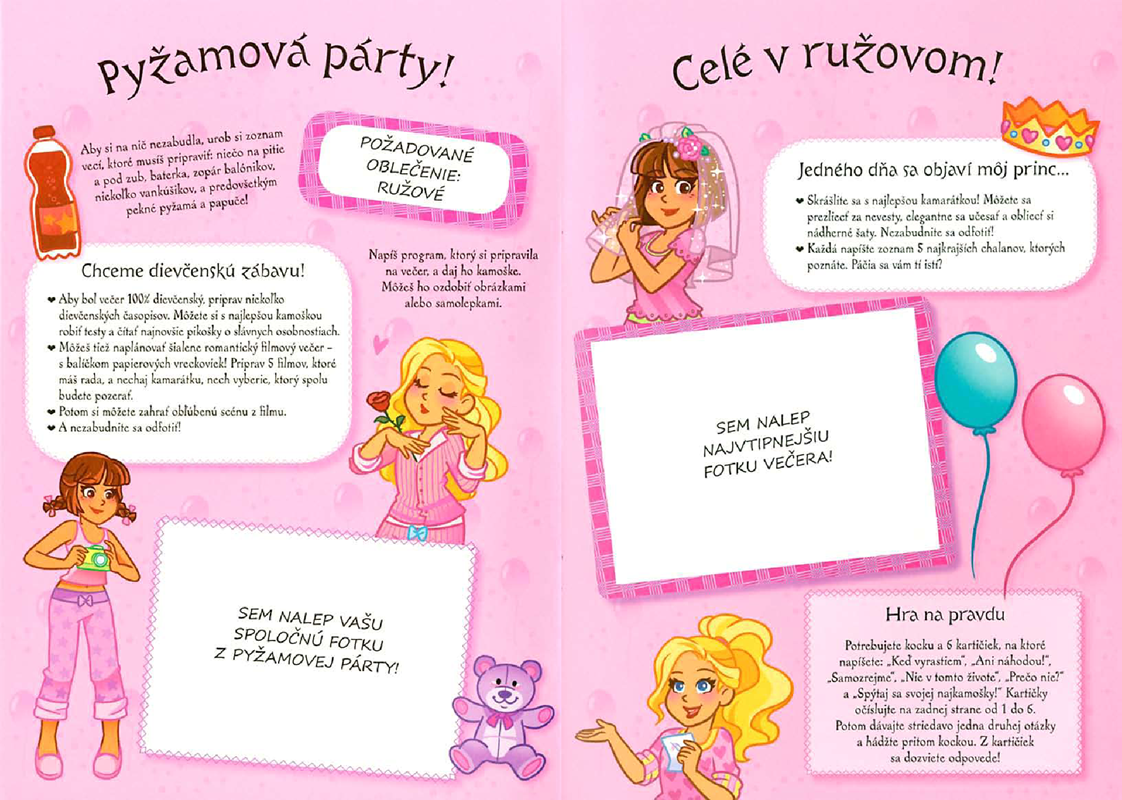 Vyplňte tento kamarátniček spolu so svojou najlepšou kamoškou. Odpovedzte na otázky, aby ste zistili, či sa navzájom dobre poznáte. Nalepte sem fotografie, ktoré zachytávajú vaše spoločné zážitky. Nájdete tu nápady, ako spoločne stráviť voľné chvíle - pyžamová párty, spoločenské hry, recept na nejakú maškrtu, niečo na lúštenie a, samozrejme, test, ktorý vám odhalí skutočnú silu vášho priateľstva.