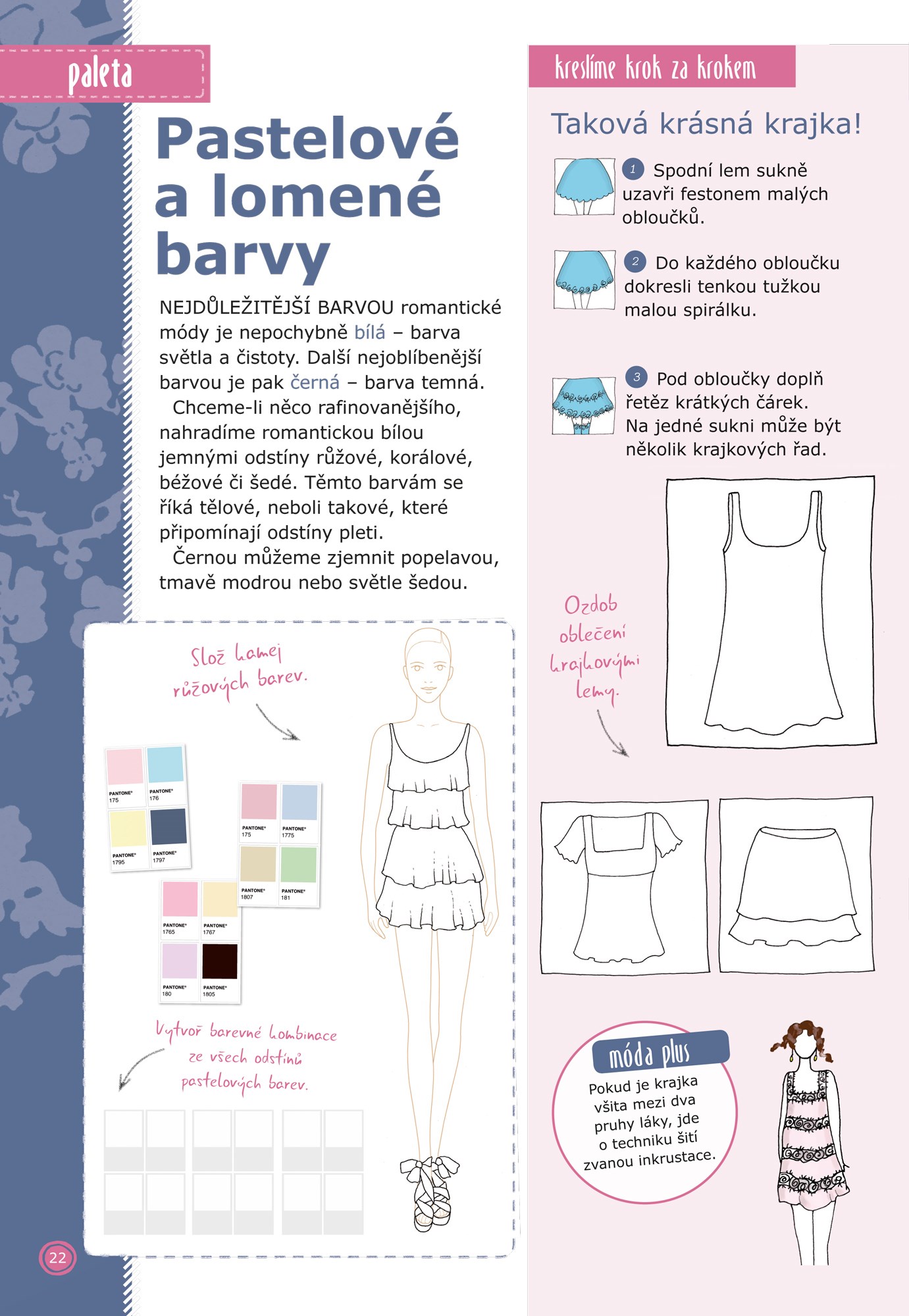 Na konci každé z osmi kapitol, které se týkají jednotlivých módních stylů, najdeš i stránky pro prezentaci svých návrhů.