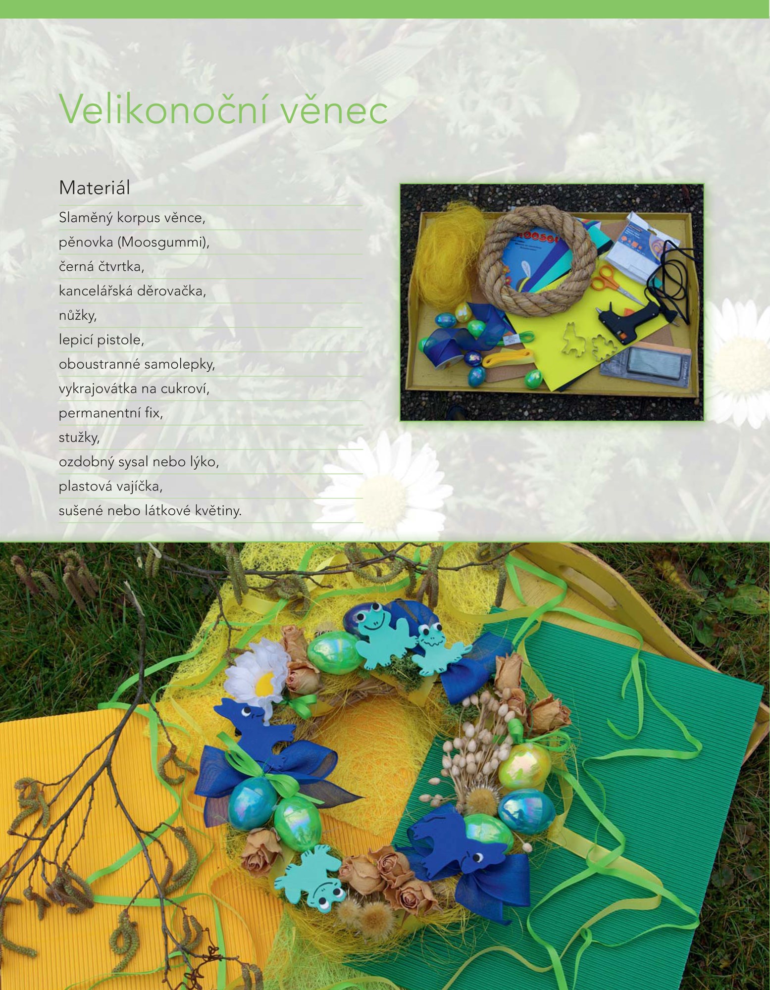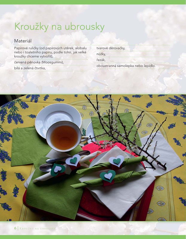Kniha je rozdělena do čtyř kapitol podle ročních období, od jara do zimy si tedy můžete vybrat z různých projektů a inspirovat se tak k vlastní tvorbě. Budete pracovat s textilem, papírem, přírodninami, korálky, dekoračním těstem a dalšími materiály, které jsou však snadno dostupné a fi nančně nenáročné. Jednotlivé projekty jsou doprovázeny srozumitelnými návody a bohatou fotografi ckou přílohou, zvládne je tedy i začátečník. Tkané náramky, Letní košíček, Lampionky do zahrady, Kytičky z korálků a spousta dalších skvělých výrobků čeká jen na vás. Tak šup, vyhrňte si rukávy, teď nadchází ta pravá chvíle pro zábavné tvoření!