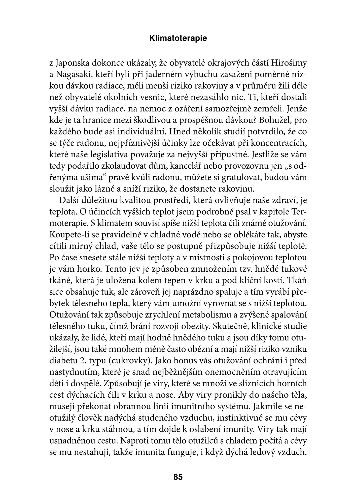 Základem této knihy jsou nejmodernější vědecké poznatky, které respektují individualitu a skutečnou biologickou podstatu člověka. Jsou součástí konceptu hormeze, tedy příznivého působení malých dávek stresu, který se v posledních 10 letech stává vědeckým hitem, díky schopnosti prodlužovat život a léčit civilizační choroby. Tato kniha se nezakládá jen na moderních mýtech, tisíckrát omílaných tvrzení nebo esoterice. Doporučení vyplývající z výzkumu hormeze jsou tak nová a neotřelá, že se často dostávají do rozporu s tím, co se můžete dočíst v časopisech, nebo čím vás krmí samozvaní odborníci v televizi. I proto může být tato kniha pomyslným elixírem, který změní vaše životy k lepšímu.