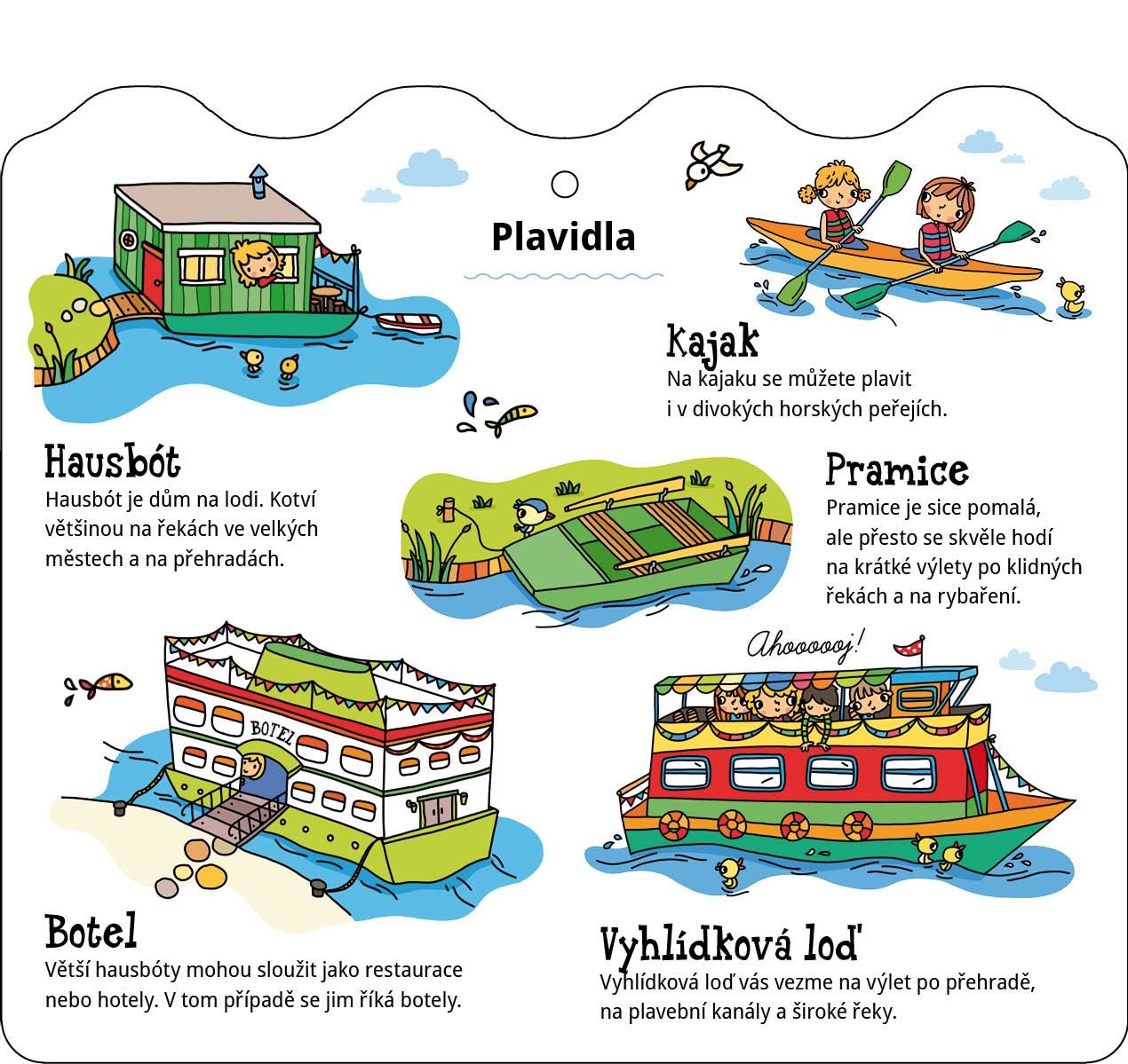 a samozřejmě také různá plavidla. Knihu si díky otvorům ve stránkách můžeš pověsit na zeď jako obrázek! Řeka pak poteče přímo ve tvém pokoji.