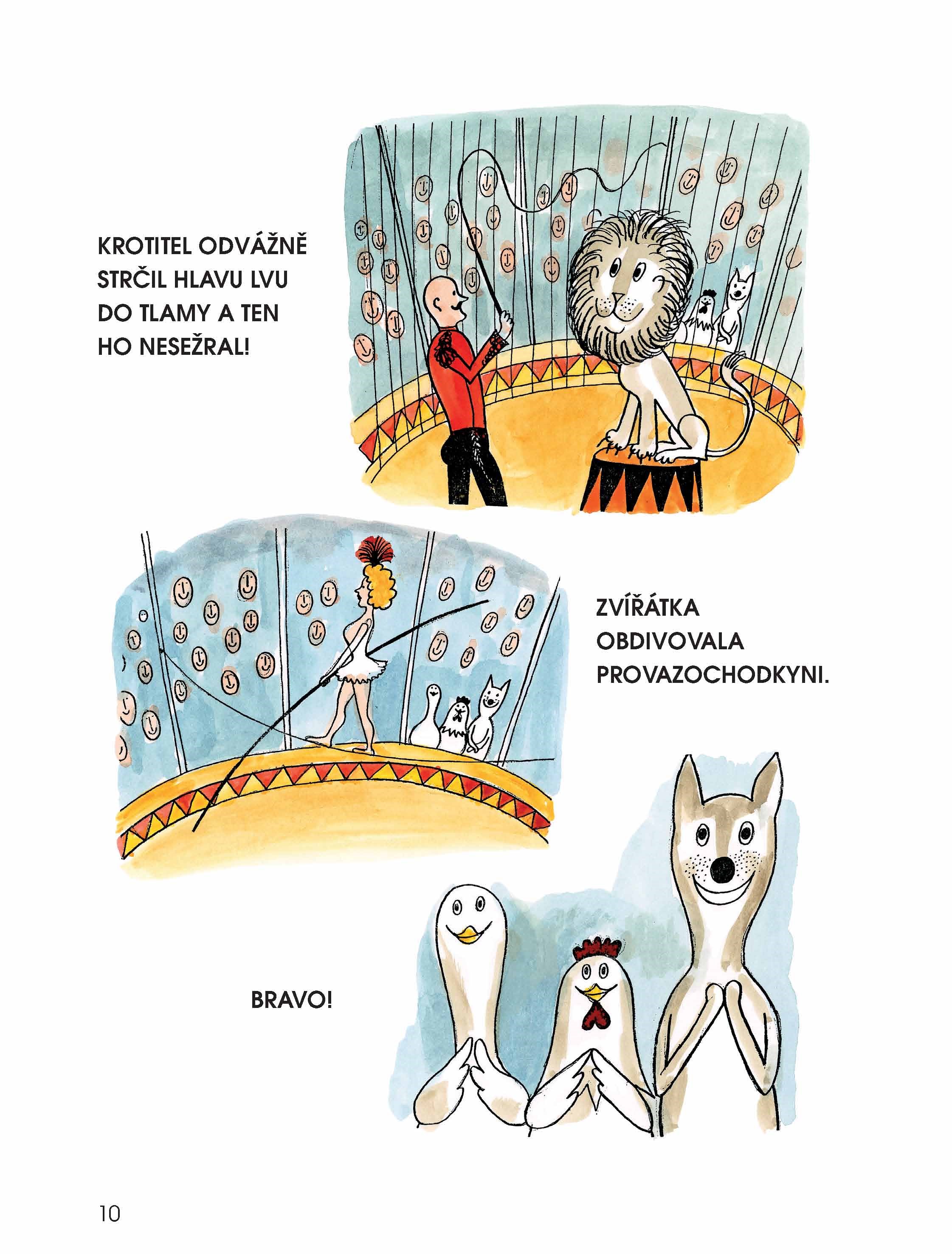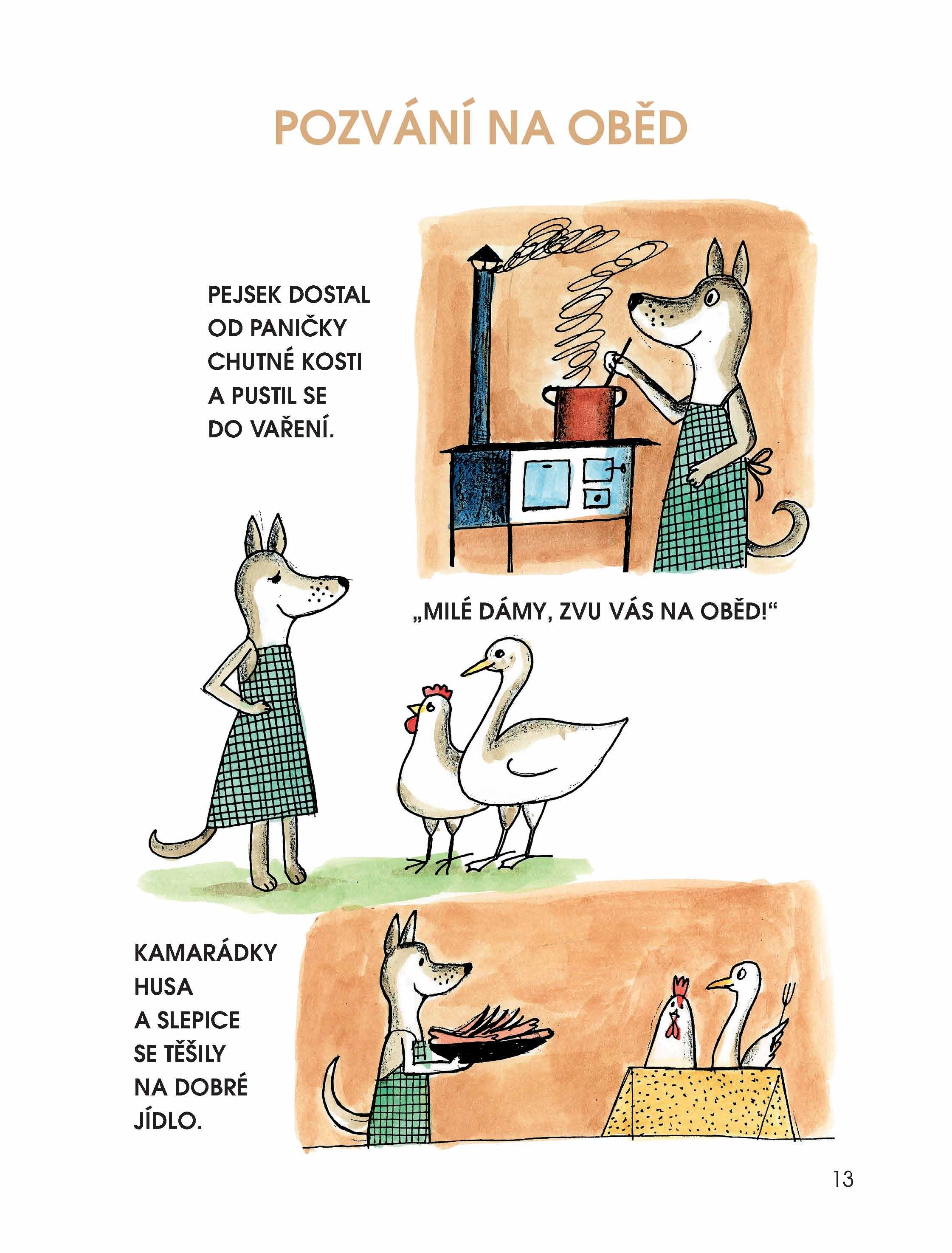 Spousta zábavy se třemi přáteli – pejskem, husou a slepicí. Vykutálené obrázkové seriály.