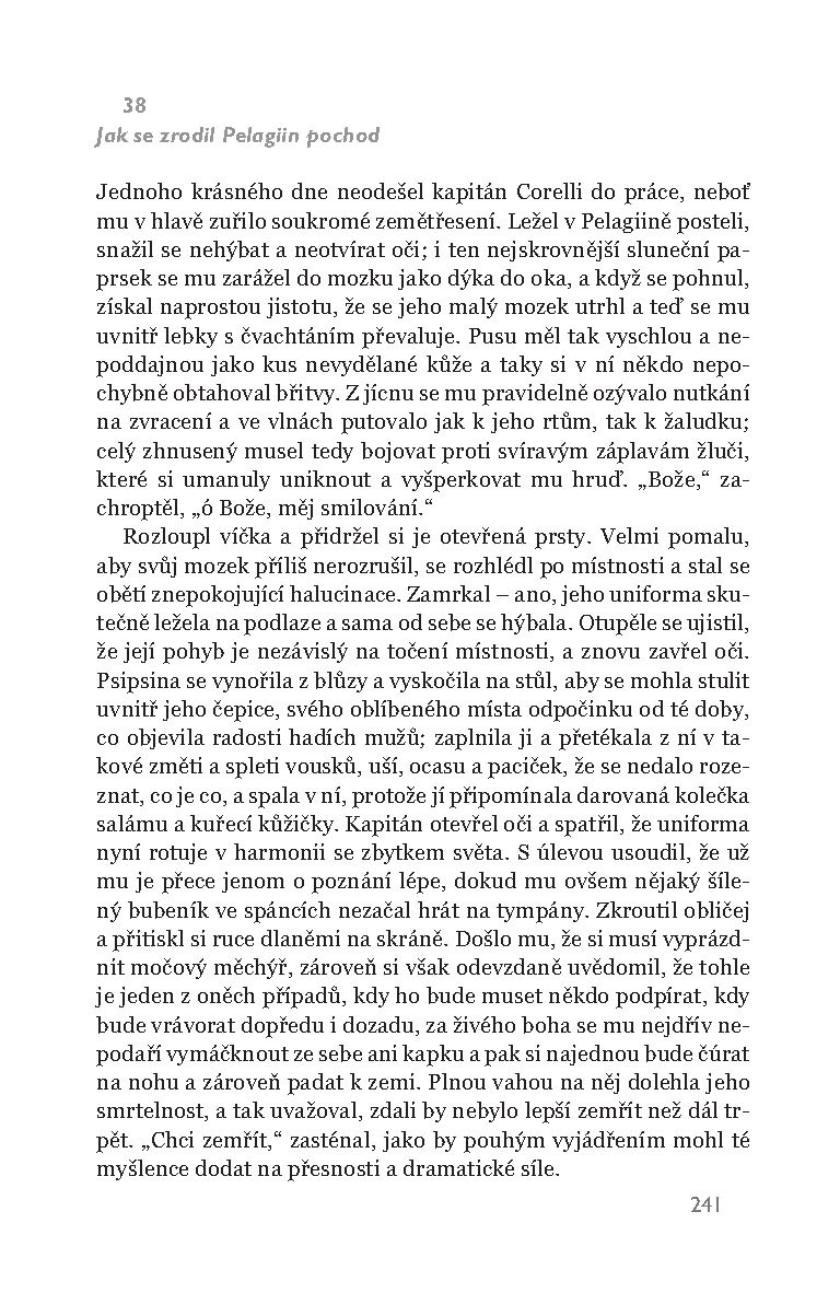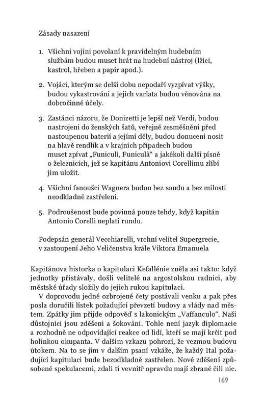 V roce 1941 idylický řecký ostrov Kefallénie okupovali Italové. Mezi nimi je i kapitán Antonio Corelli, člověk kultivovaný a vtipný, navíc skvělý mandolinista. Shodou okolností je nakvartýrován do rodiny doktora Jannise, jehož dcera Pelagia je sice od počátku rozhodnutá charismatického a bezelstného Itala nenávidět, nakonec si ho ale proti své vůli zamiluje. To by bylo v pořádku, kdyby za a) neměla snoubence u řeckých komunistických partyzánů a za b) kapitán nebyl – alespoň oficiálně – nepřítel…