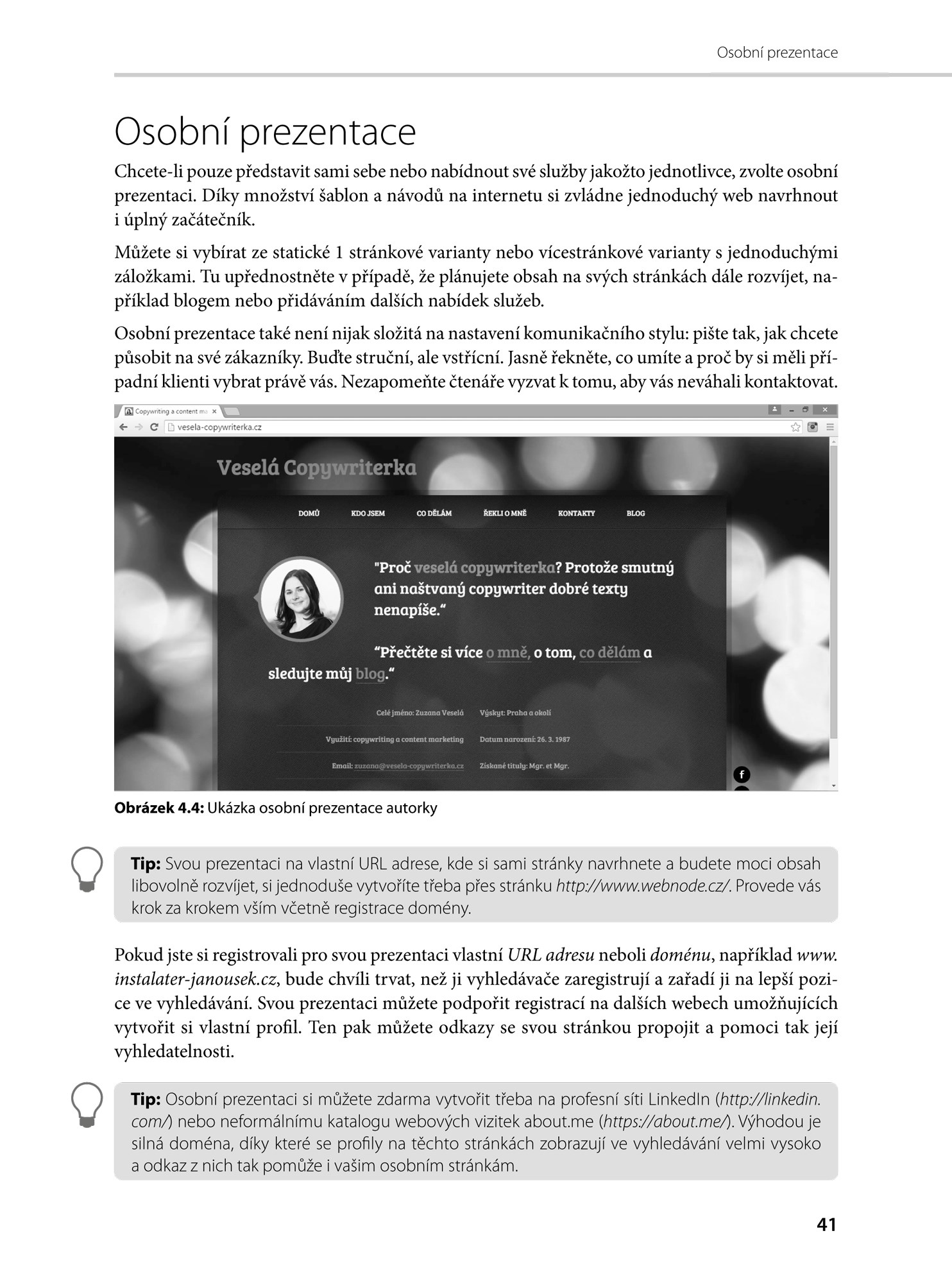 Webcopy patrí medzi ďalšie zaujímavé aktuálne témy. Určite ste sa už stretli s webovou stránkou, ktorá bola nezrozumiteľne otextovaná, vládol v nej chaos, bola neprehľadná a mätúca. Webcopy sa dá označiť za gro v online písaní a je východzí bod pre marketingové aktivity. Pokiaľ je stránka nezrozumiteľná užívateľ ju väčšinou ihneď opustí a vy ste prišli o potencionálneho zákazníka. Ako pozitívne vnímam príkladné ukážky dobrého a zlého webcopy, ktoré sú súčasťou kapitoly. Viete sa rýchlejšie zorientovať, akým chybám sa treba vyhnúť už pri prvotnom zrode vašej webovej stránky.
