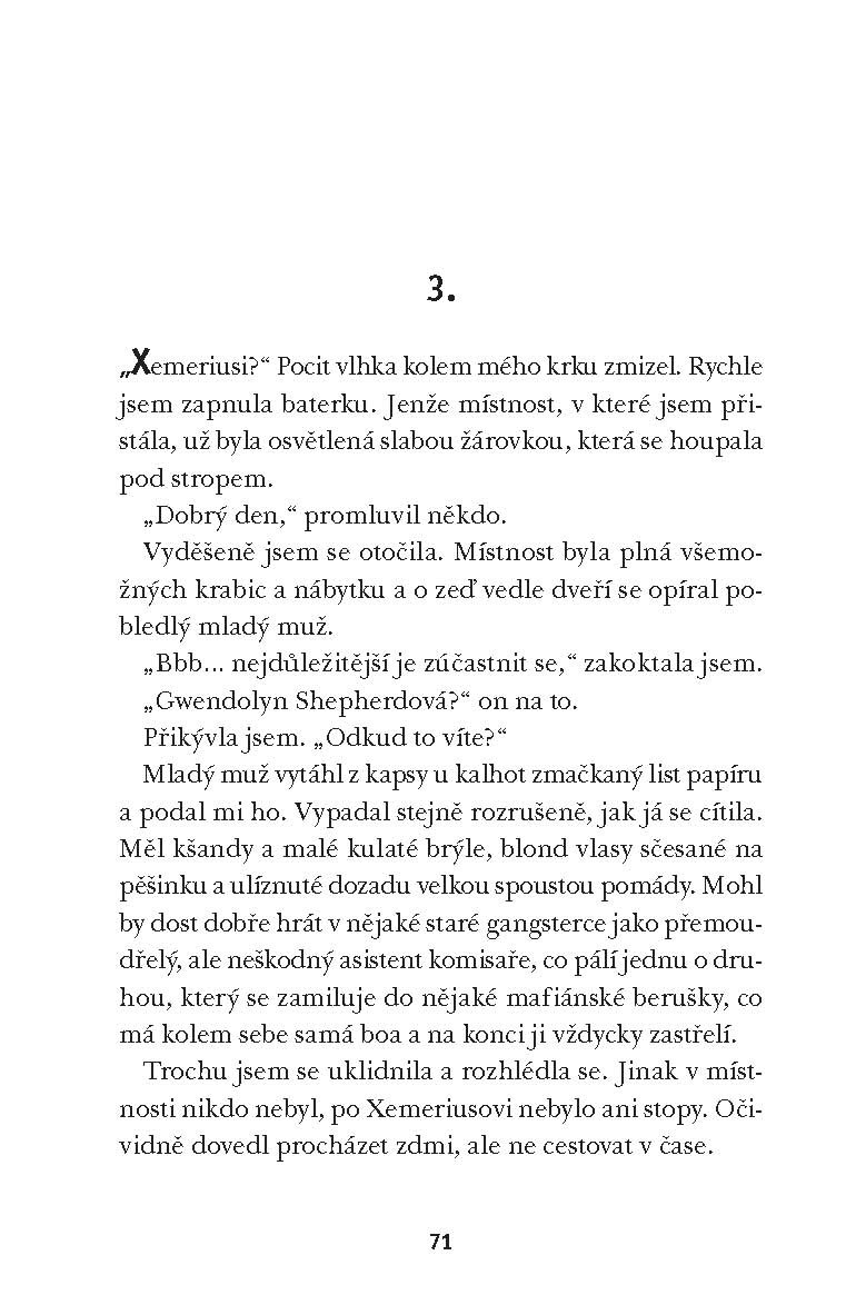 Být čerstvě zamilovaná v minulosti vážně není dobrý nápad. To si přinejmenším myslí šestnáctiletá Gwendolyn, novopečená cestovatelka časem. Koneckonců mají oba s Gideonem docela jiné starosti. Například jak zachránit svět. Nebo se naučit tančit menuet (A ani jedno není vůbec snadné!). Gwen má sice po svém boku několik dobrých rádců, ale když se Gideon začne chovat tajuplně, je jí jasné, že musí své hormony co nejdříve dostat pod kontrolu. Jinak z toho, že láska nezná čas, nezbude vůbec nic!