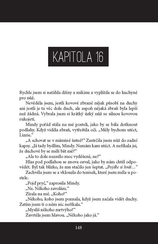 Druhá linie příběhu se odehrává právě v Darcyině románu, což je napínavý thriller o Lizzie, náctileté holce, které se podaří proklouznout do „Zásvětí“, místa mezi životem a smrtí, a přežije tak útok teroristů. Tato nová schopnost Lizzie zaskočí, Zásvětí je nebezpečné, plné potulujících se duší, které čekají na své rozhřešení. Může jim někdo pomoci? A co všechno musí dát Lizzie všanc?
