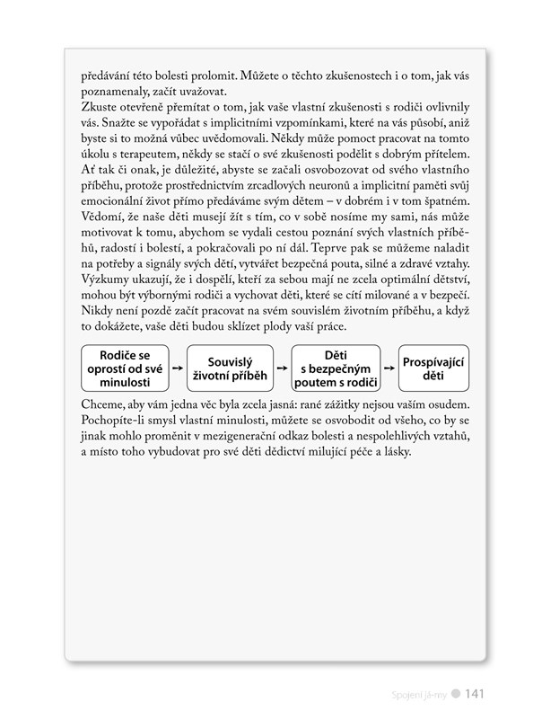 „Dynamická a čtivá kniha... Autoři odmítají zastaralé modely ‚dobrého‘ a ‚špatného‘ rodičovství a místo nich nám nabízejí pohled přes hledáček vědy: pohled na vliv rodičovství na rozvoj dětského mozku. Rodiče se dozvědí, jak může každodenní empatie a porozumění pomáhat dětem integrovat své zkušenosti a rozvinout si pružnější a odolnější mozek.“