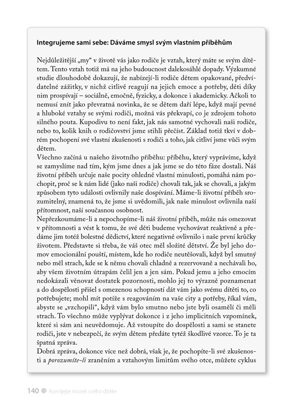 „Tato kniha předkládá rodičům i učitelům nápady, jak uvést všechny části zdravého dětského mozku do vzájemné spolupráce.“