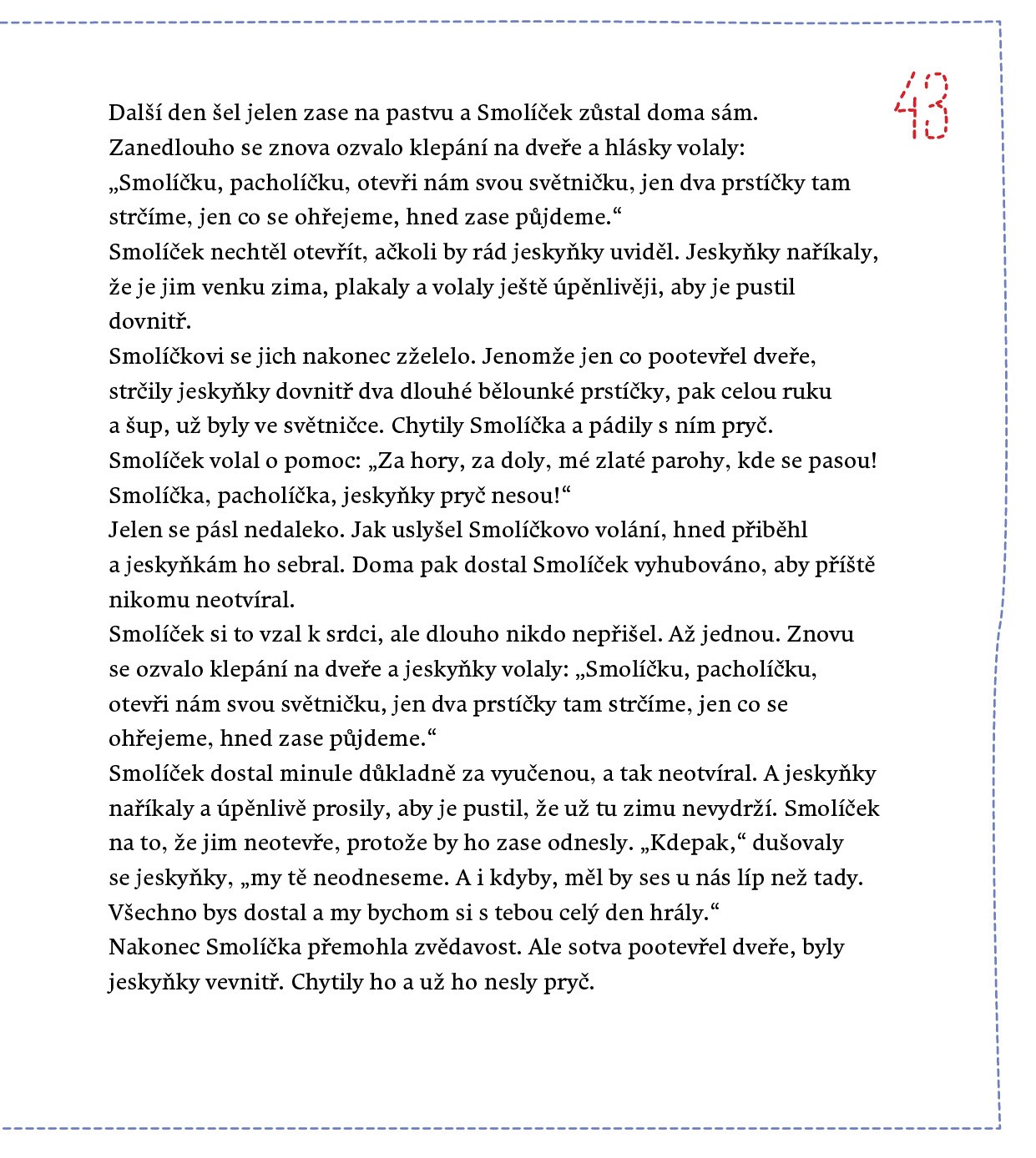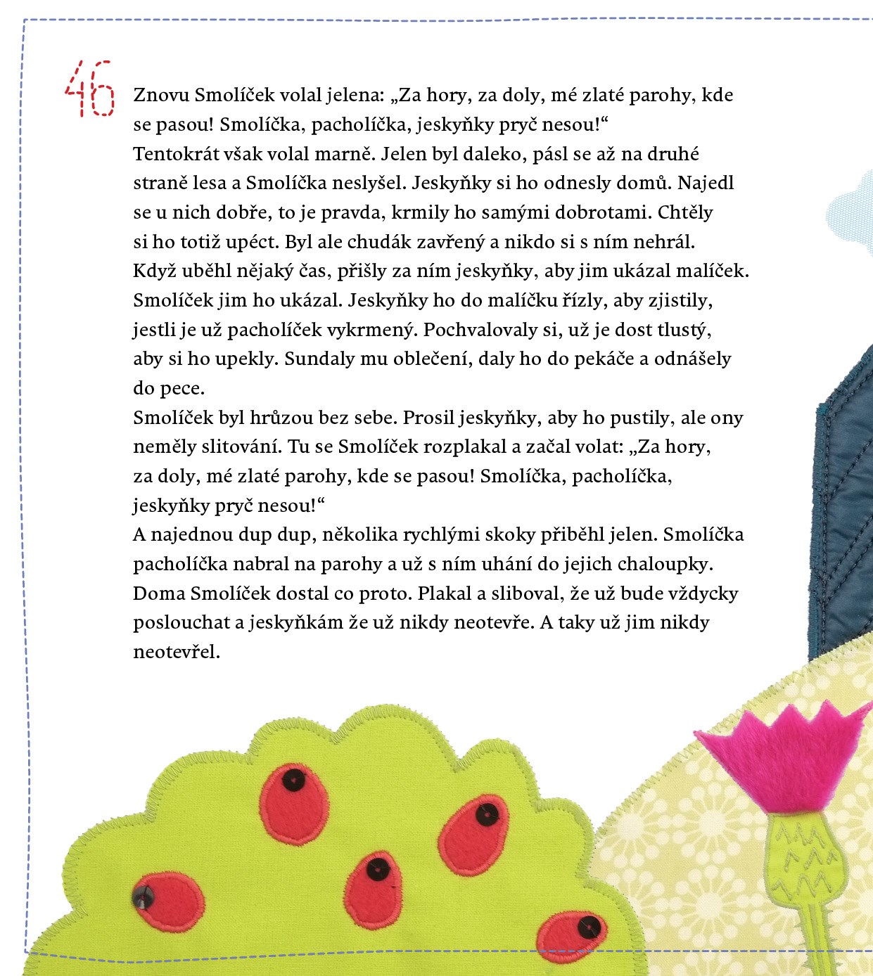 Vendula Chalánková, nápaditá výtvarná umělkyně, zábavná performerka a nepřehlédnutelná ilustrátorka, držitelka ocenění Zlatá stuha 2009 za knihu O Červené karkulce, tentokrát pro začínající čtenáře i menší děti připravila výběr těch nejkrásnějších klasických pohádek – O Budulínkovi, O neposlušných kůzlatech, O kohoutkovi a slepičce, O perníkové chaloupce, O Červené karkulce, O Smolíčkovi, O veliké řepě, O koblížkovi a Hrnečku, vař. Její netradiční vyšívané, respektive šité ilustrace plné legrace a milých detailů rozvíjejí bezbřehou dětskou fantazii a svým vtipem učarují také nejednomu rodiči. Pokud hledáte klasické pohádkové příběhy v moderním pojetí, tato kniha nesmí ve vaší knihovničce chybět.