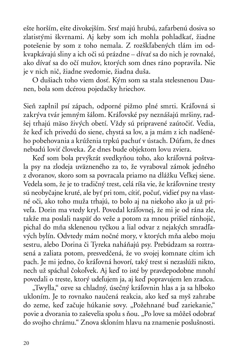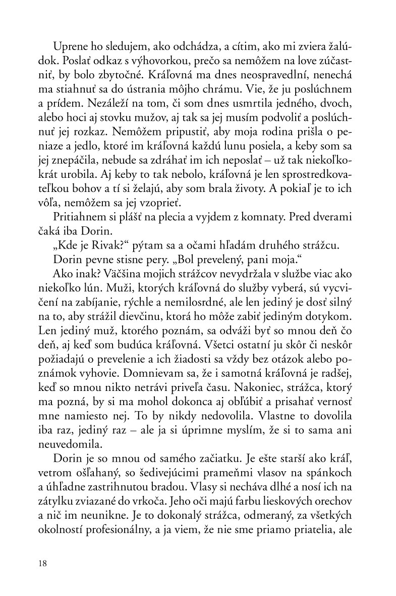 „Volám sa Twylla a som bohmi vyvolená. Každý môj dotyk však zabíja... žijem osamelo a izolovane, som kráľovniným katom.“