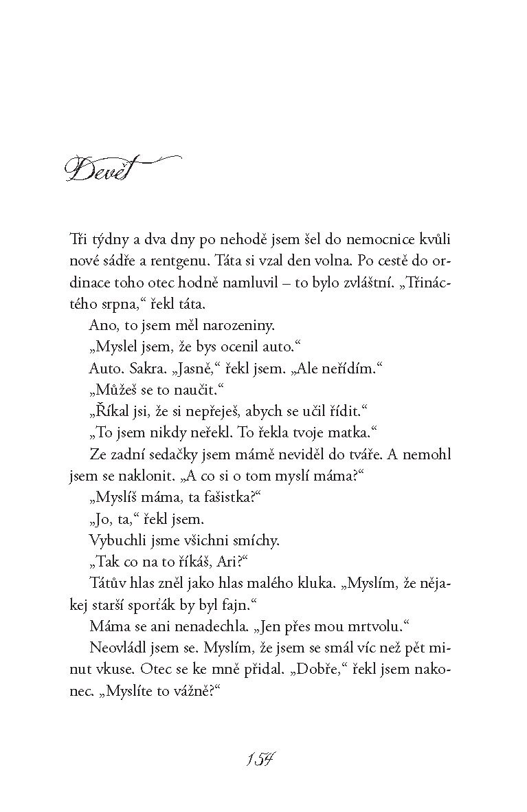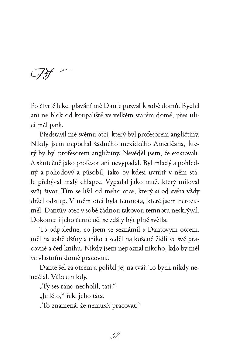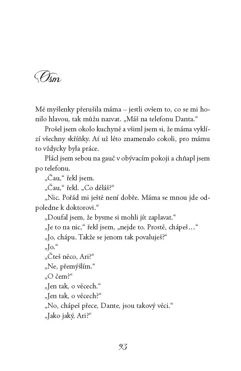 Tihle dva kluci se potkají na koupališti a zdá se, že nemají zhola nic společného. Ale protože jsou oba samotáři, začnou spolu trávit čas a zjistí, že jejich přátelství je opravdu neobyčejné – takové, které změní životy a vydrží navždycky. A díky němu také Ari i Dante zjistí ty nejdůležitější pravdy o sobě samých a o tom, jakými lidmi by se chtěli stát.