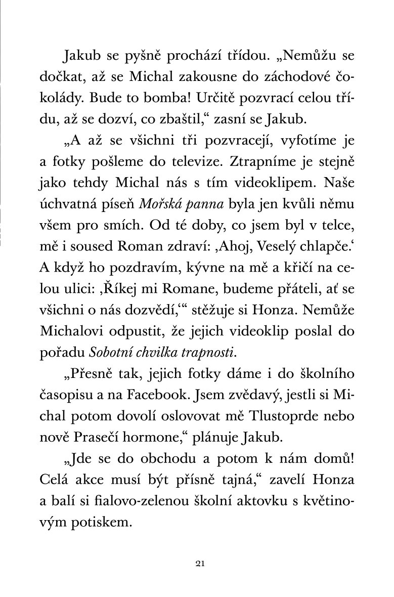 Jakub a jeho nejlepší kamarád Honza mají super plán, jak se pomstít svým největším nepřátelům, třídním esům ve zlobení Michalovi a Tomášovi. Připraví jim dokonalé čokoládové pohoštění, ze kterého je bude ještě hodně dlouho bolet břicho. Těší se na to, že pomsta bude sladká, tedy spíš záchodově nechutná. To by ovšem jejich nekalé plány nesměli odhalit Michal s Tomášem…