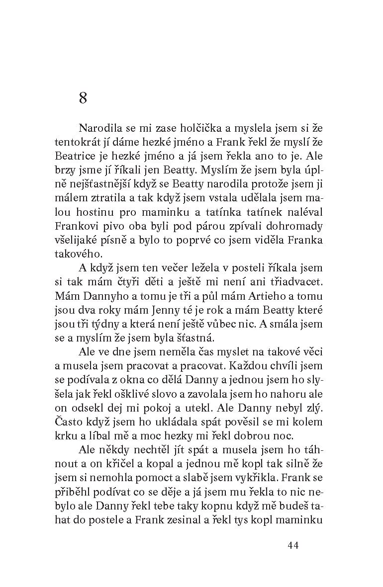 Jakoby jedním dechem chrlí Mary Williamsová ze stránek knihy svou zpověď. Ve vzpomínkách se vrací k svatbě, šťastnému manželství a nejkrásnějším okamžikům, kdy držela v náručí právě narozené dítě. Přivedla na svět čtyři a po smrti manžela je s vypětím všech sil a za cenu těžkých obětí sama vychovala. Tím nejdůležitějším v jejím příběhu je však láska matky, která nezmizí, ať už jsou děti jakékoli a spáchají cokoli. A možná právě toto poselství je důvodem, proč kniha dokáže oslovit další a další generace čtenářů.