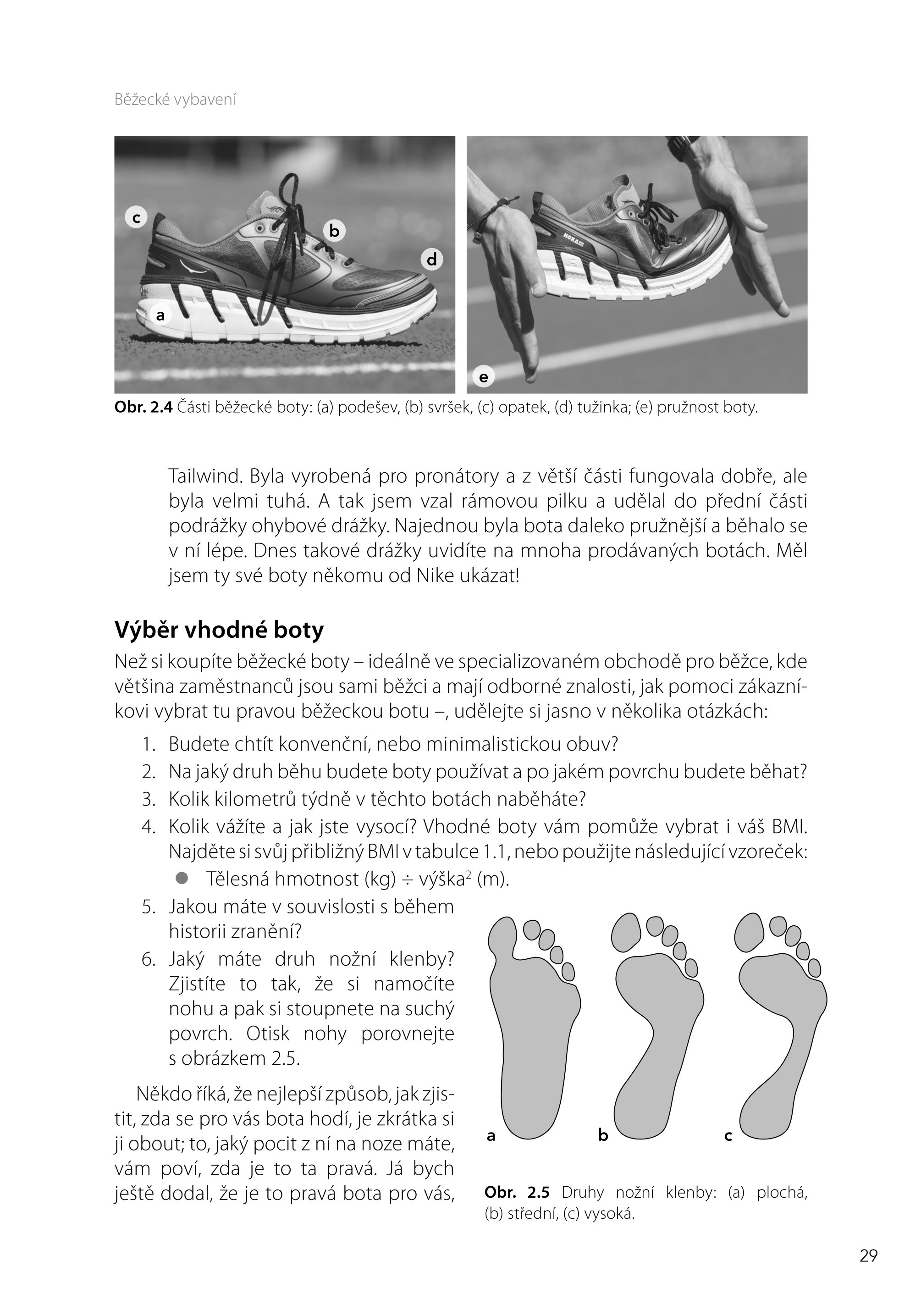- První část nabízí rady a tipy o běžeckém oblečení, botách, běžeckých stylech, ale také techniky zahřátí a vychladnutí, informace o procesu adaptace a také specifických potížích, kterým musejí v různých životních fázích čelit ženy - běžkyně. Je zde podrobně vysvětlený maximální příjem kyslíku, který je nejvýznamnějším měřítkem běžecké zdatnosti. Najdete tu přehled méně i více pokročilého běžeckého vybavení společně s radami, jak se dobře vybavit, aniž byste museli utratit celé jmění. Zjistíte pro a proti nošení minimalistické obuvi a běhání naboso. Otevřeným a praktickým způsobem zde naleznete zásadní teorii generalizované adaptace Hanse Selye a její důsledky pro každého, kdo běhá nebo trénuje.