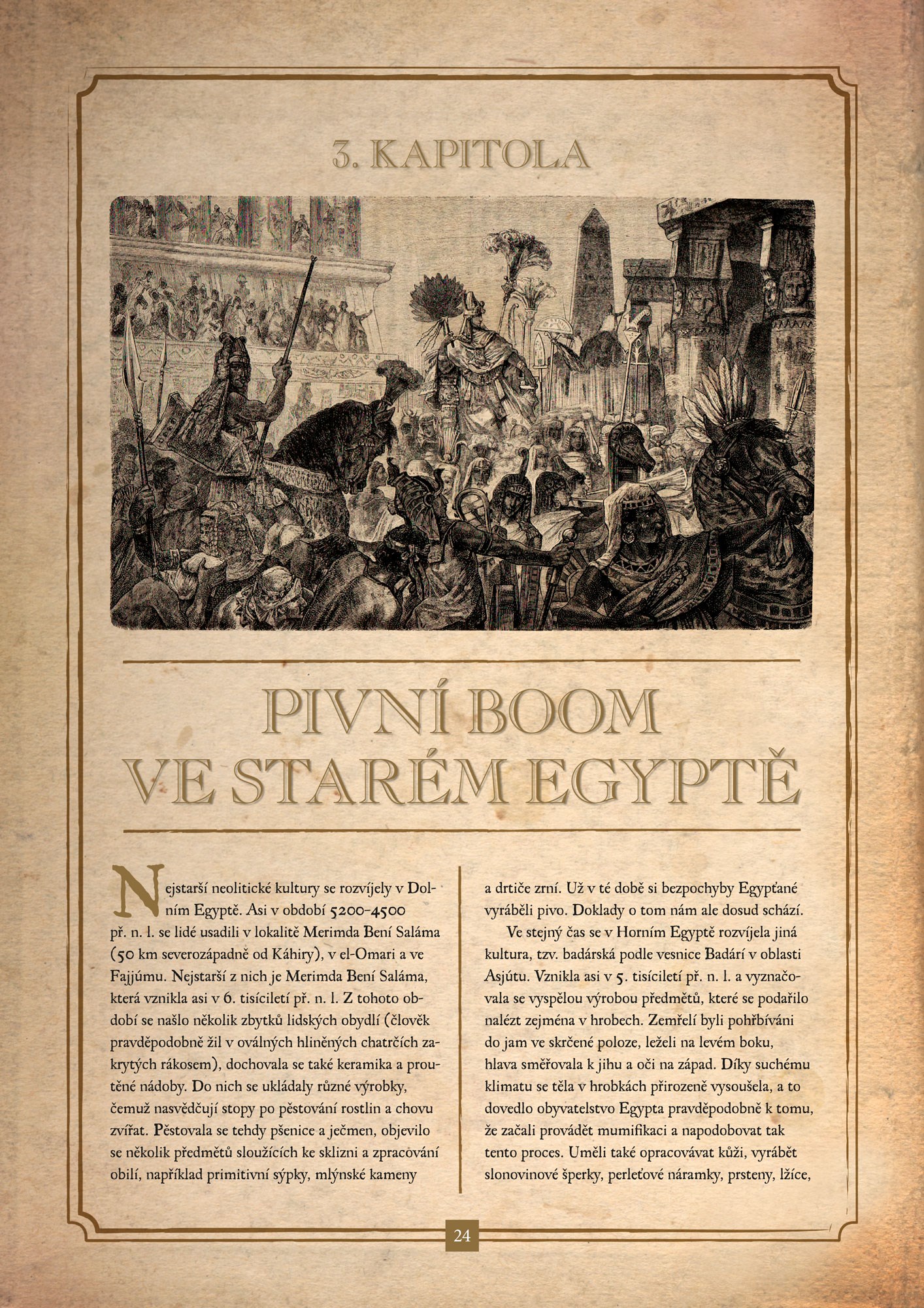 Kniha čtivou formou ukazuje dosud nezmiňované ekonomické a kulturní souvislosti spojené s pivovarnictvím. Globální oteplení v neolitu změnilo dosavadní stravovací preferenci lidí - daleko dostupnější se staly první obiloviny.