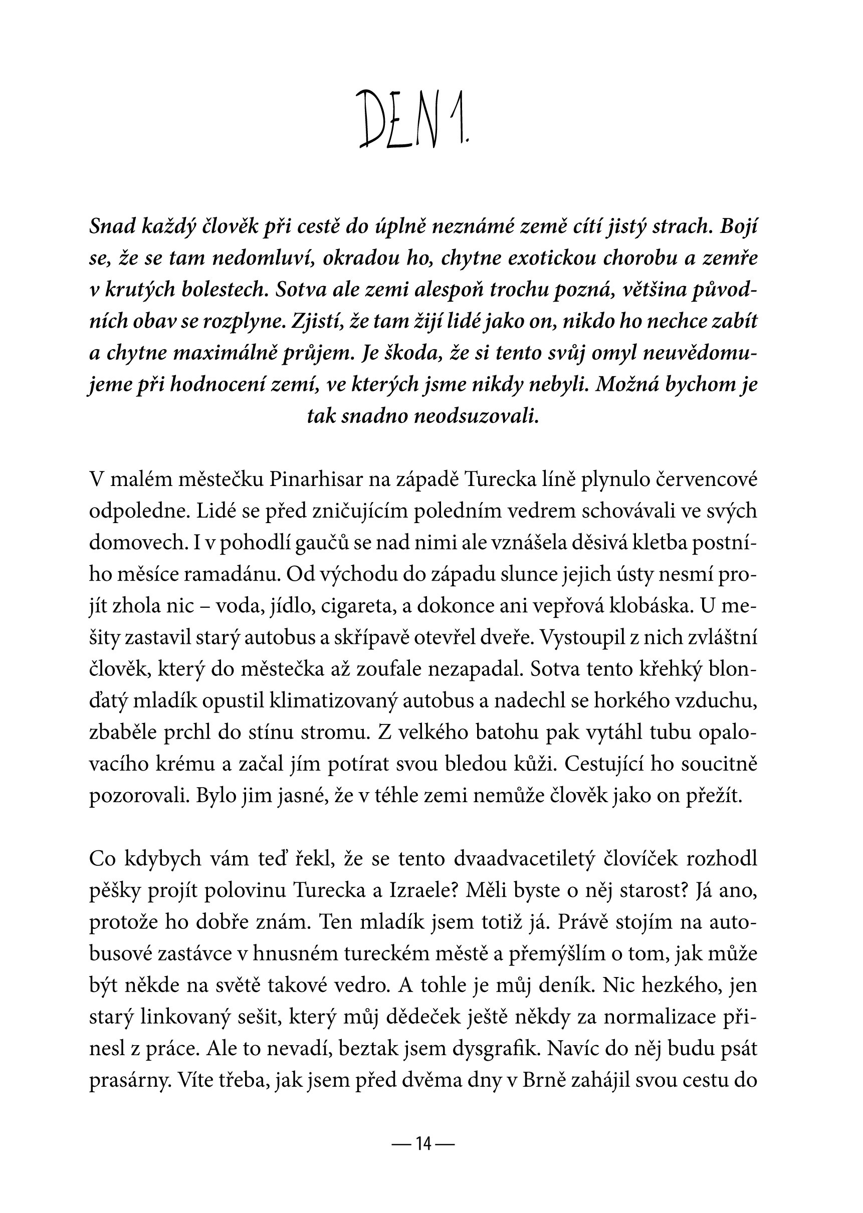 Dvaadvacetiletý Ladislav Zibura v létě sbalil svůj život do 12 kilogramů, hodil batoh na záda a vypravil se po vlastních do Jeruzaléma. Bez mapy a orientačního smyslu pěšky ušel 1 400 kilometrů napříč rozpálenou krajinou Turecka a Izraele, stanul pod Zdí nářků a prožil největší dobrodružství svého života. Jeho cesta je příběhem omylů, pozoruhodných setkání, puchýřů a opruzenin. Těšte se na vyprávění cynického kavárenského povaleče, který vám svým laskavě nekorektním humorem dokáže, že poutník rozhodně nemusí být katolík, asketa ani nudný člověk.