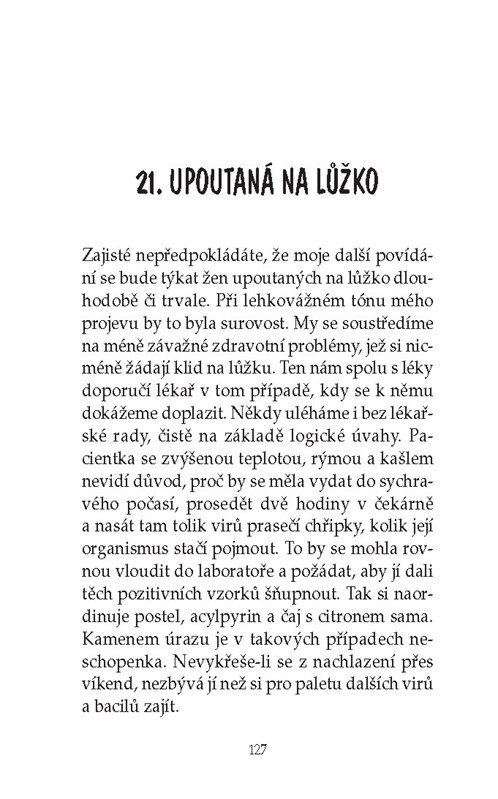 Kniha oblíbené autorky je věnována ženám, jejich radostem a strastem, přednostem a vadám. To ale neznamená, že by se v nich nehovořilo o mužích, právě naopak, vždyť muži jsou hlavním zdrojem ženského potěšení i trápení. Autorka provází ženu celým životem od chvíle nejkrásnější, kdy kráčí, většinou v bílém, k oltáři se svým vyvoleným, až po okamžik, kdy s ním nebo bez něj vstupuje do období důchodového. To vše s laskavým humorem, který je Ivance Deváté vlastní.