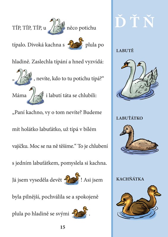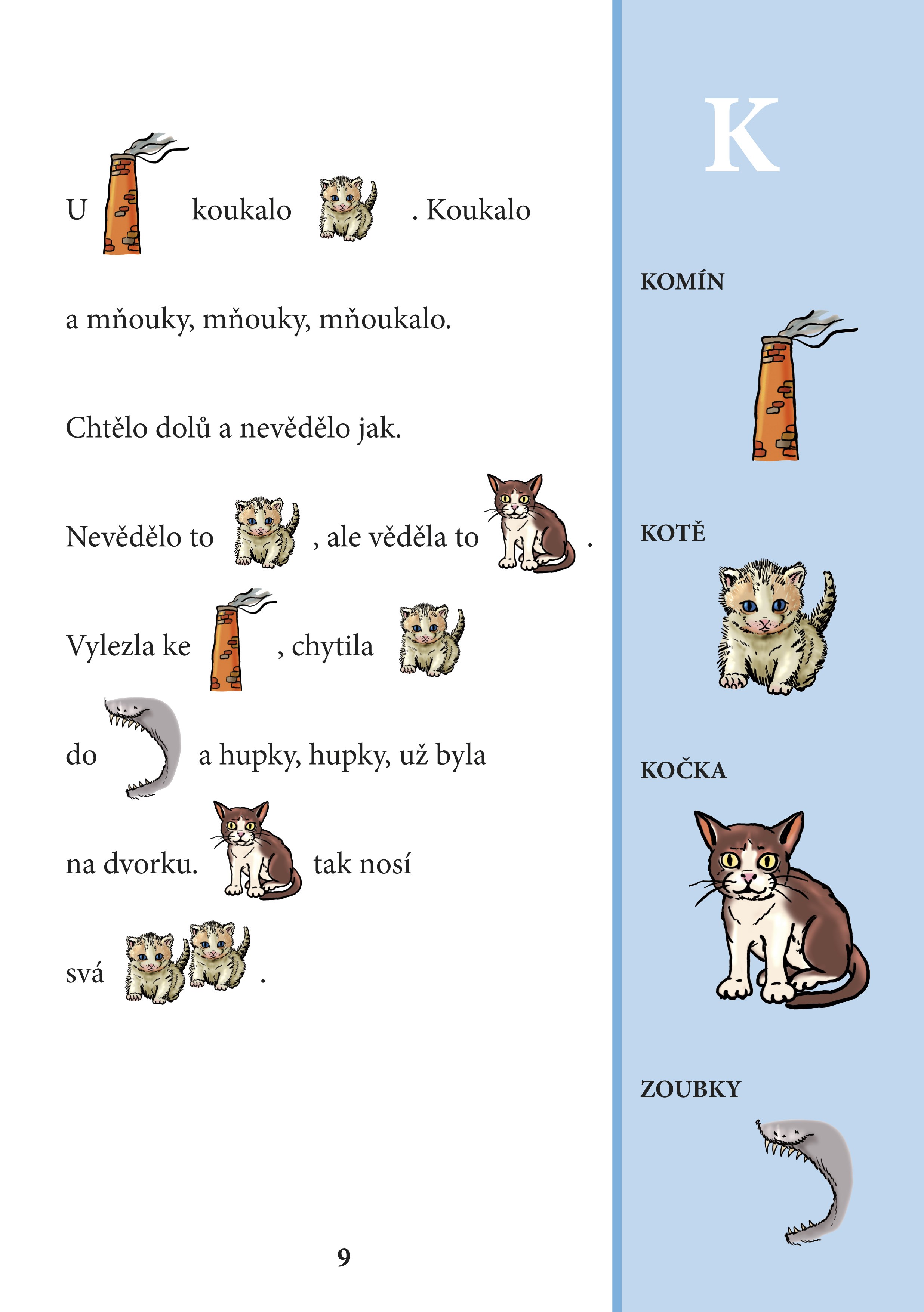 - obrázkové čtení (příběhy z přírody, vybraná slova k procvičení výslovnosti hlásek P-B-N-D-F-V-K-H-CH-ĎŤŇ jsou v textu nahrazena obrázky)