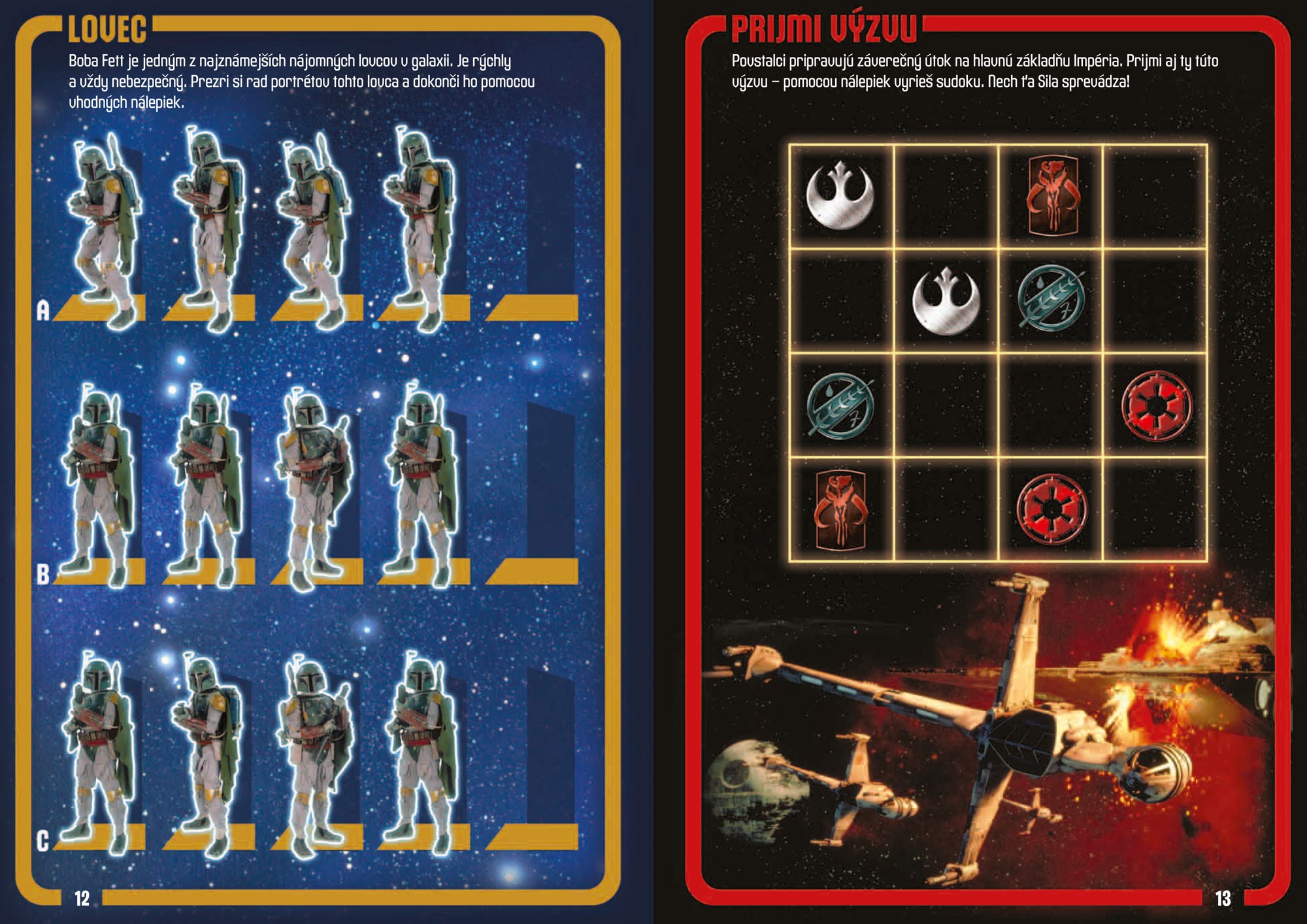Povstalci zdvíhajú hlavu a idú do boja proti galaktickému Impériu. Vo svojich radoch majú nových spojencov, mladého Jediho Luka Skywalkera a jeho priateľa Hana Sola. Podarí sa im pomôcť povstalcom zničiť Hviezdu smrti? Priprav sa na neuveriteľné dobrodružstvo! V tejto knižke nájdeš veľa úloh, rébusov a tiež mnoho fantastických nálepiek!