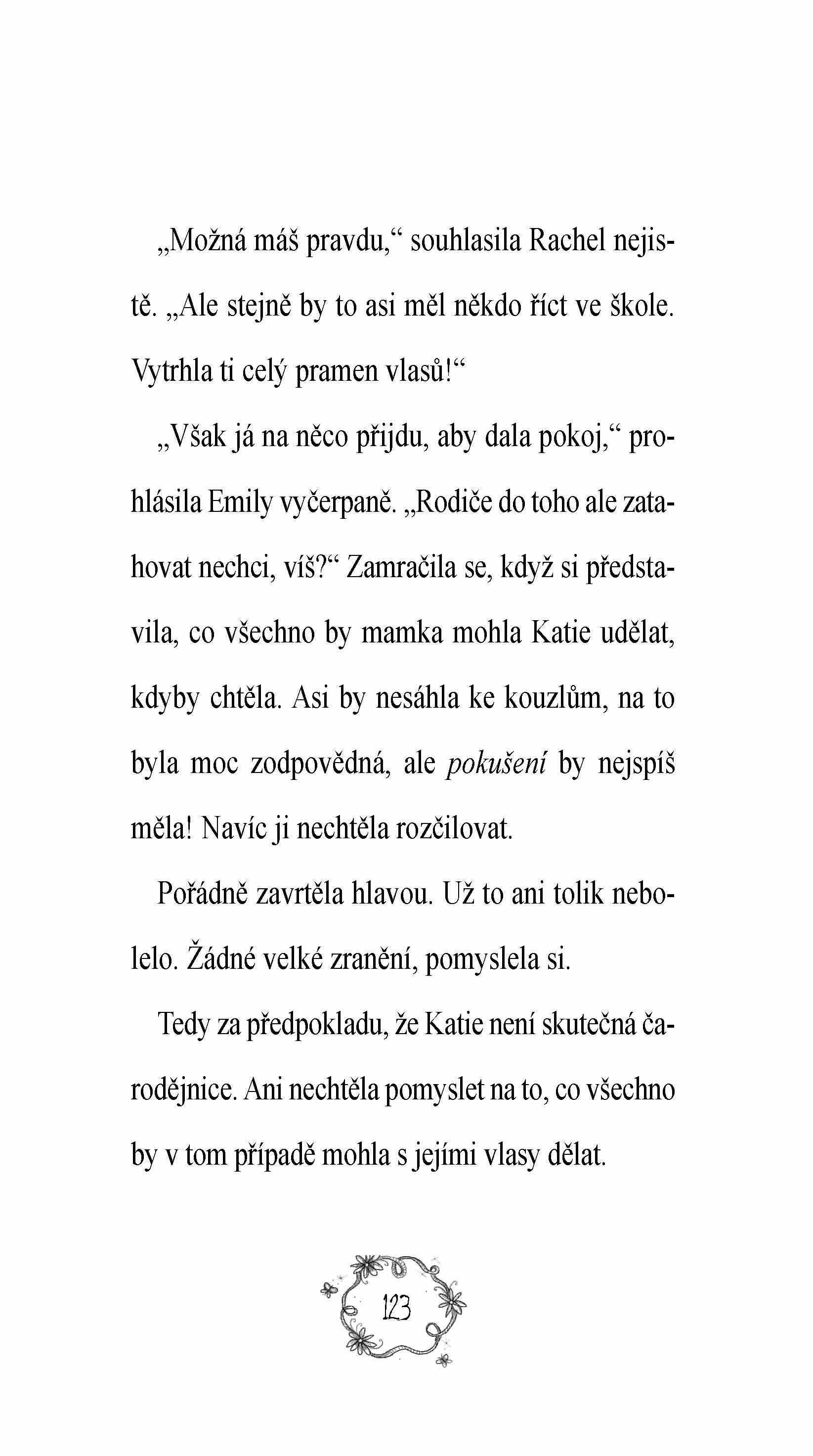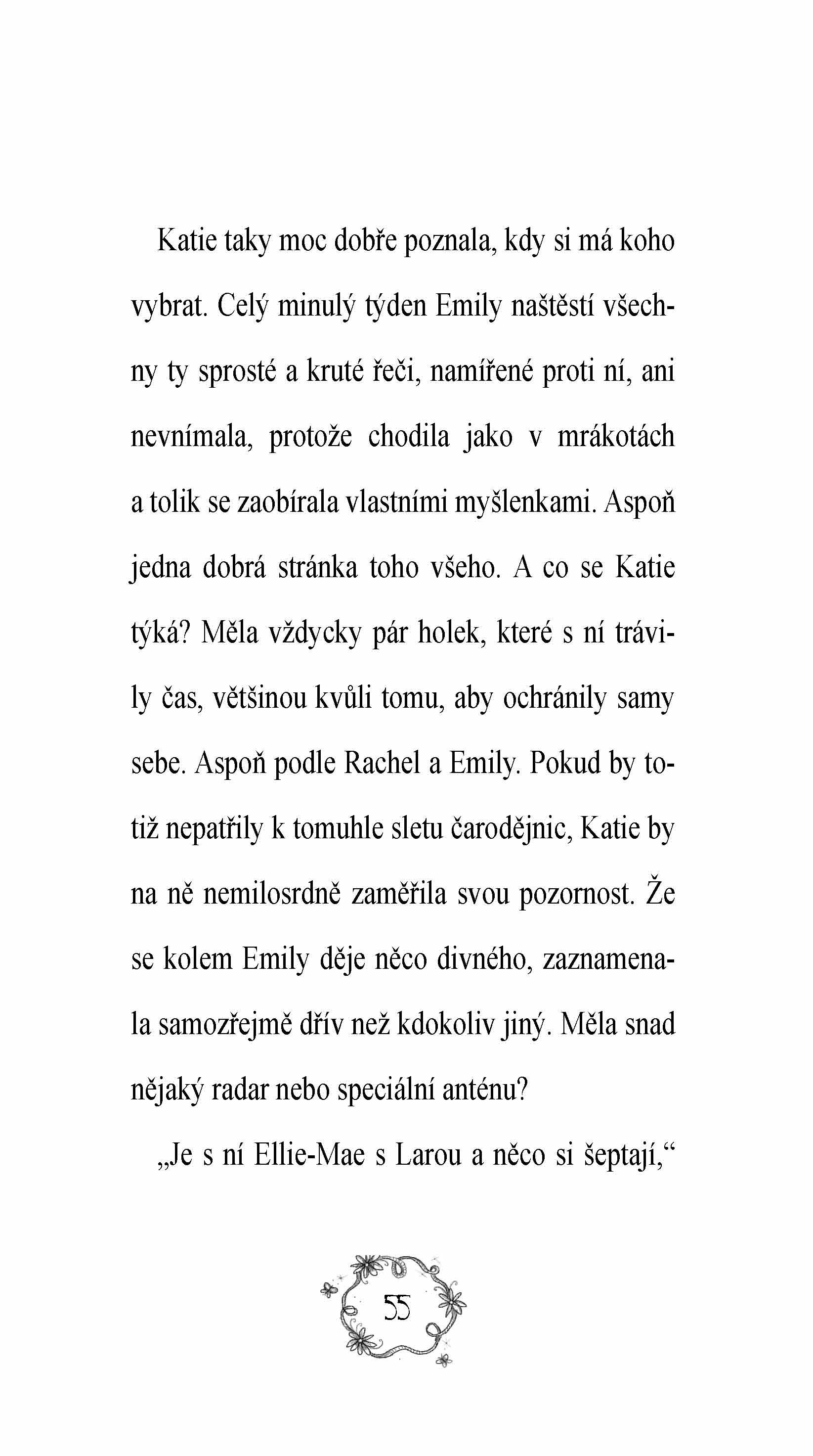 Emily se konečně dozvěděla pravdu o svojí rodině, ale není pro ni lehké se s ní vyrovnat. Její sebedůvěra je tatam. Toho využije jedna z jejích spolužaček a začne ji šikanovat. Dřív by jí k tomu Emily nedala příležitost, ale teď… A aby toho nebylo málo, Emilyina nová kamarádka ze světa za začarovanými dveřmi potřebuje pomoc. To by ovšem znamenalo porušit přísný zákaz rodičů… A možná tak ohrozit celou rodinu. Dokáže Emily kamarádku zachránit?